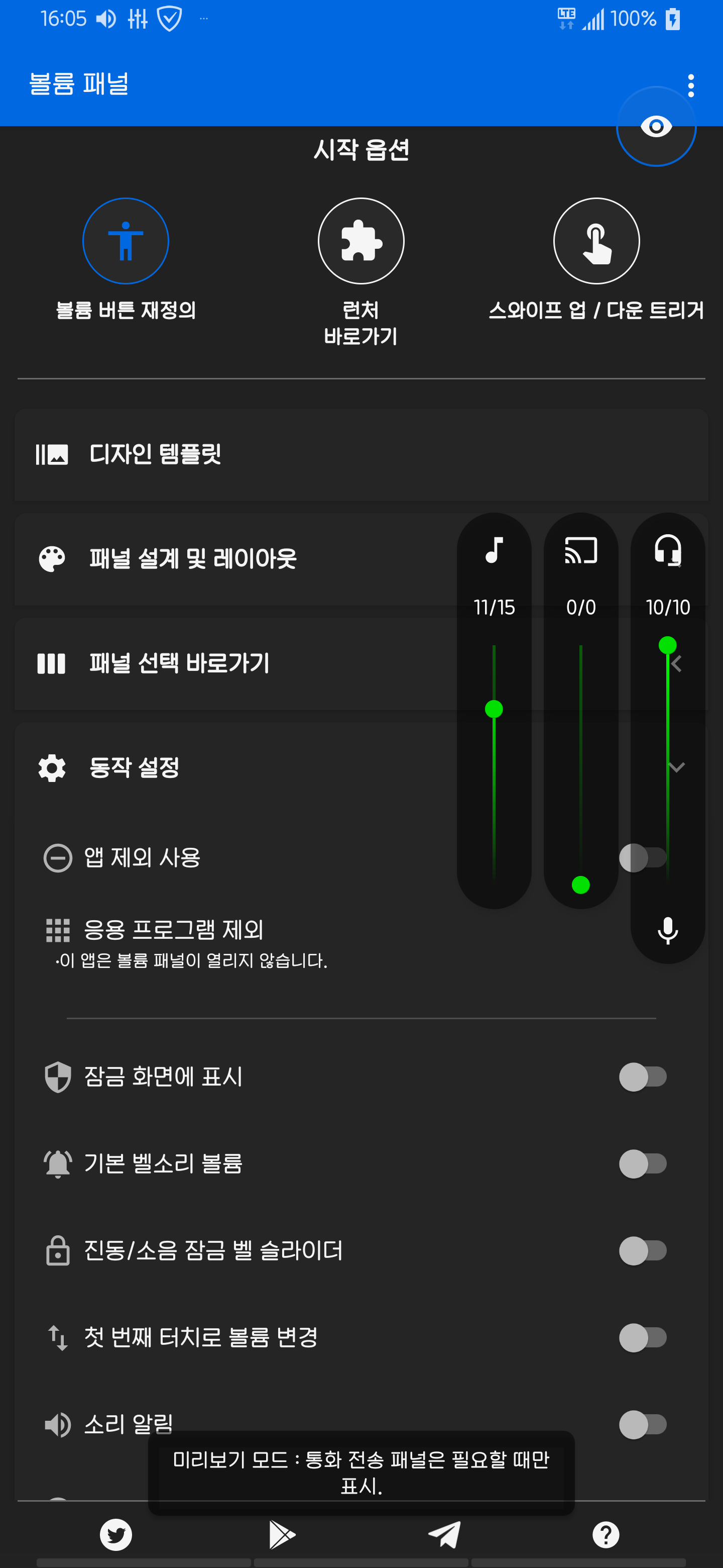 아래 - Volume Panel 적용후 첫 볼륨 조정(뷰) 와 조정중일때의 상태로 숫자로 정도를 보여 줍니다