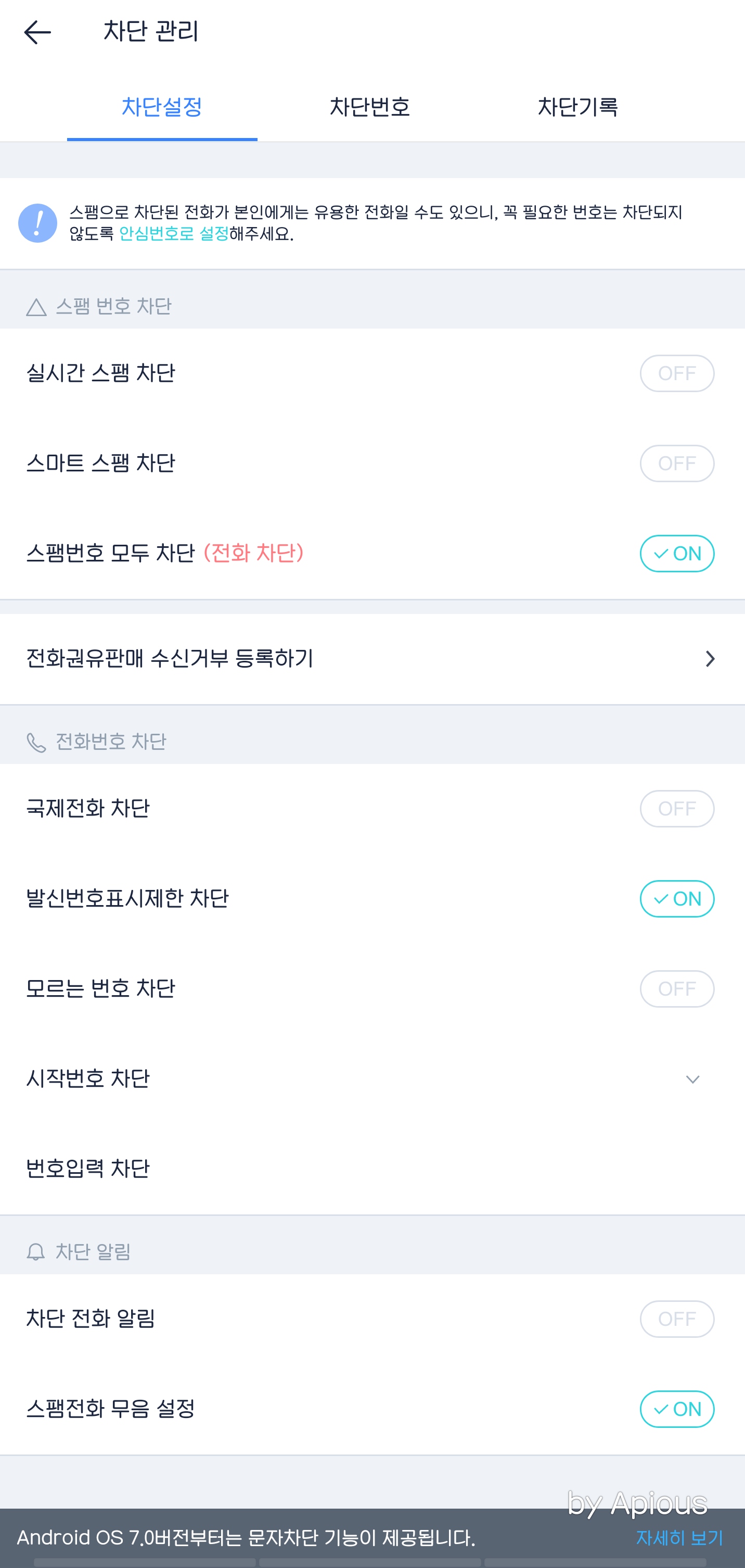 g. ✔필수 👉 계정 등록 + 처음 1~3개월간은 [안심], [차단 예외] 번호를 보고 적용 하셔야 합니다
