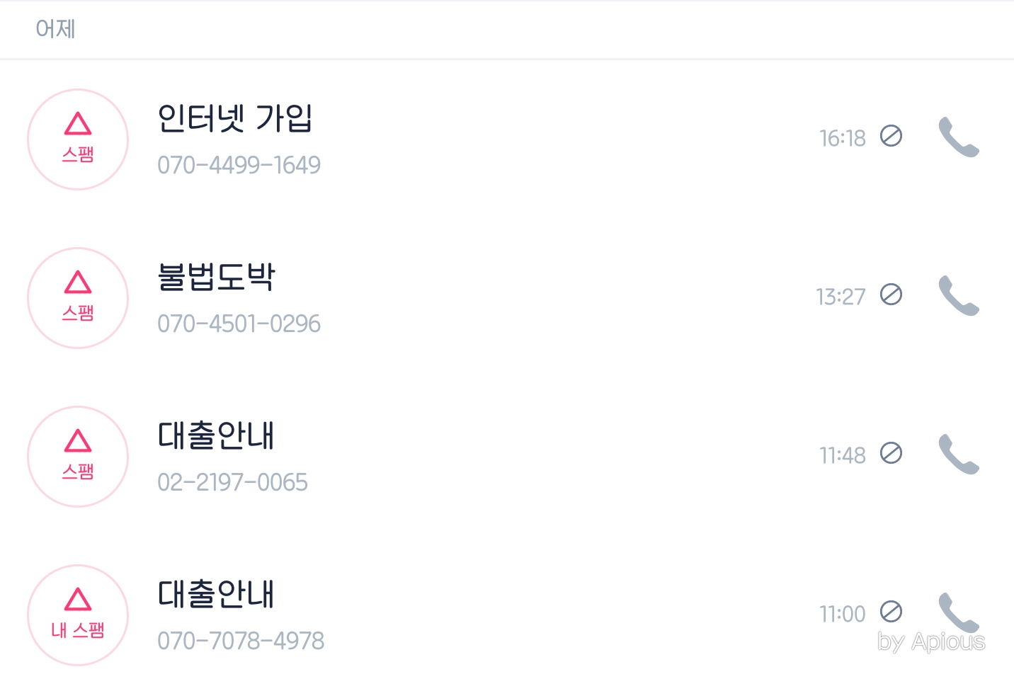 *반응에 따라 0.5 ~ 1초 늦으면 2~3초만에 자동 번호 감지 + 무음 + 차단이 되며 실 사용자는 체감을 못합니다 / 앱을 열어야 "아 차단 되었구나"를 알수 있죠... +_+
