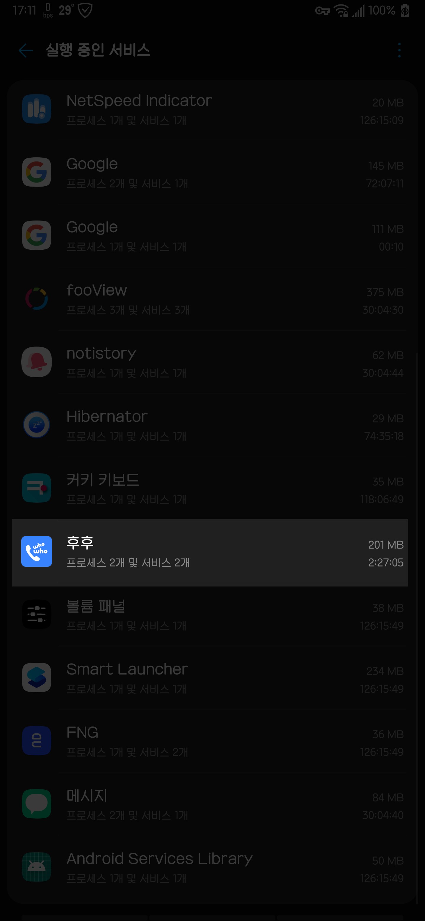 10. 개발자 옵션 - 실행중인 서비스 / 항목에서 최근 항목을 모두 종료 했어도 실행중인 상태로 유지