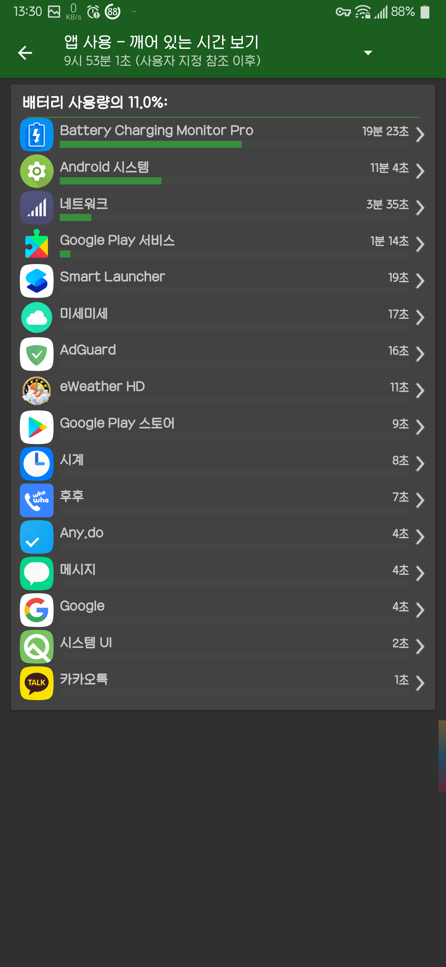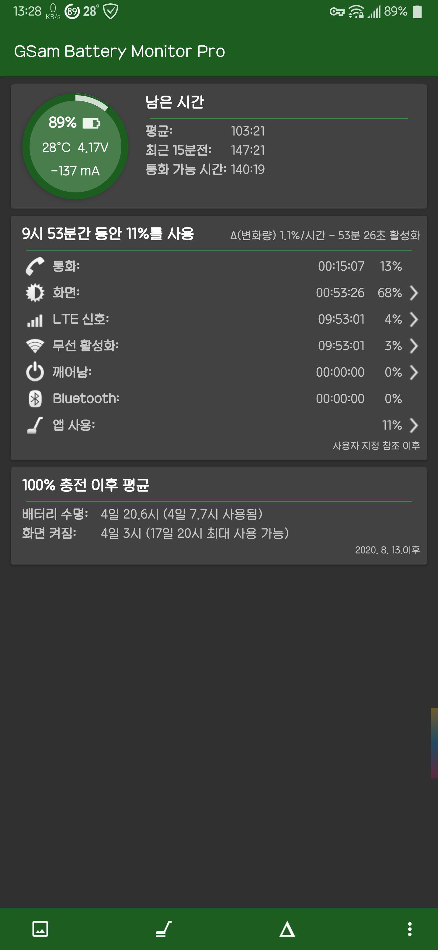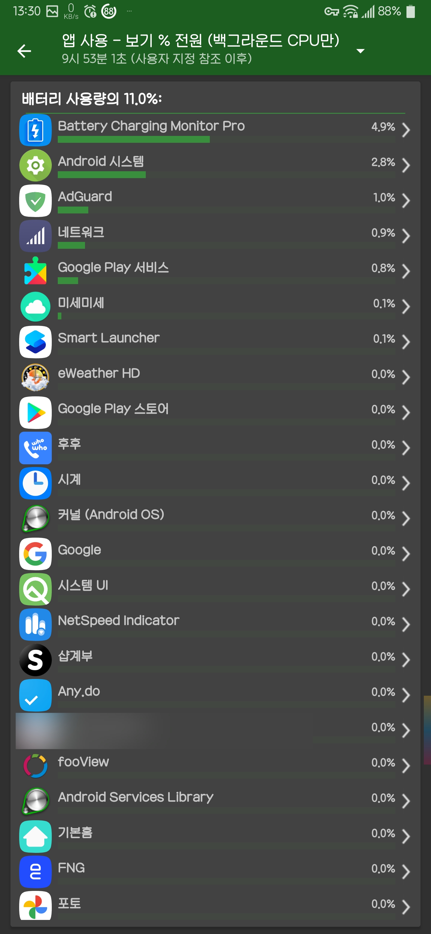 이름 : Gsam Battery Monitoring with V50 / 기본앱 최적화 된 상태