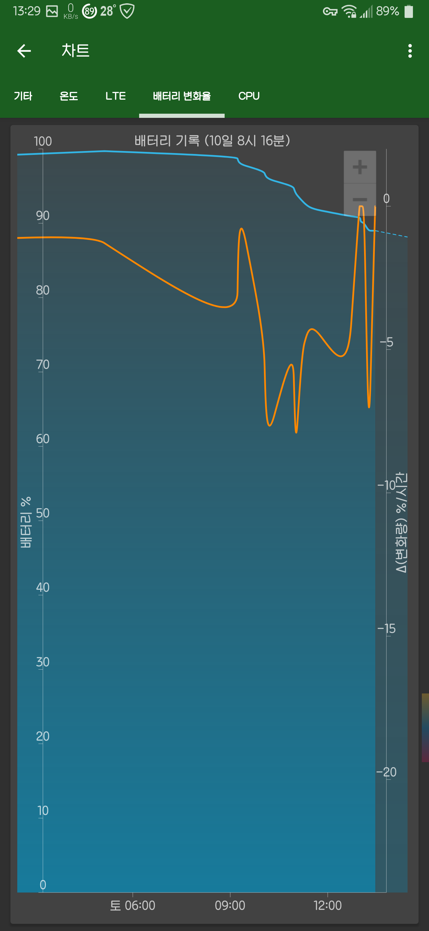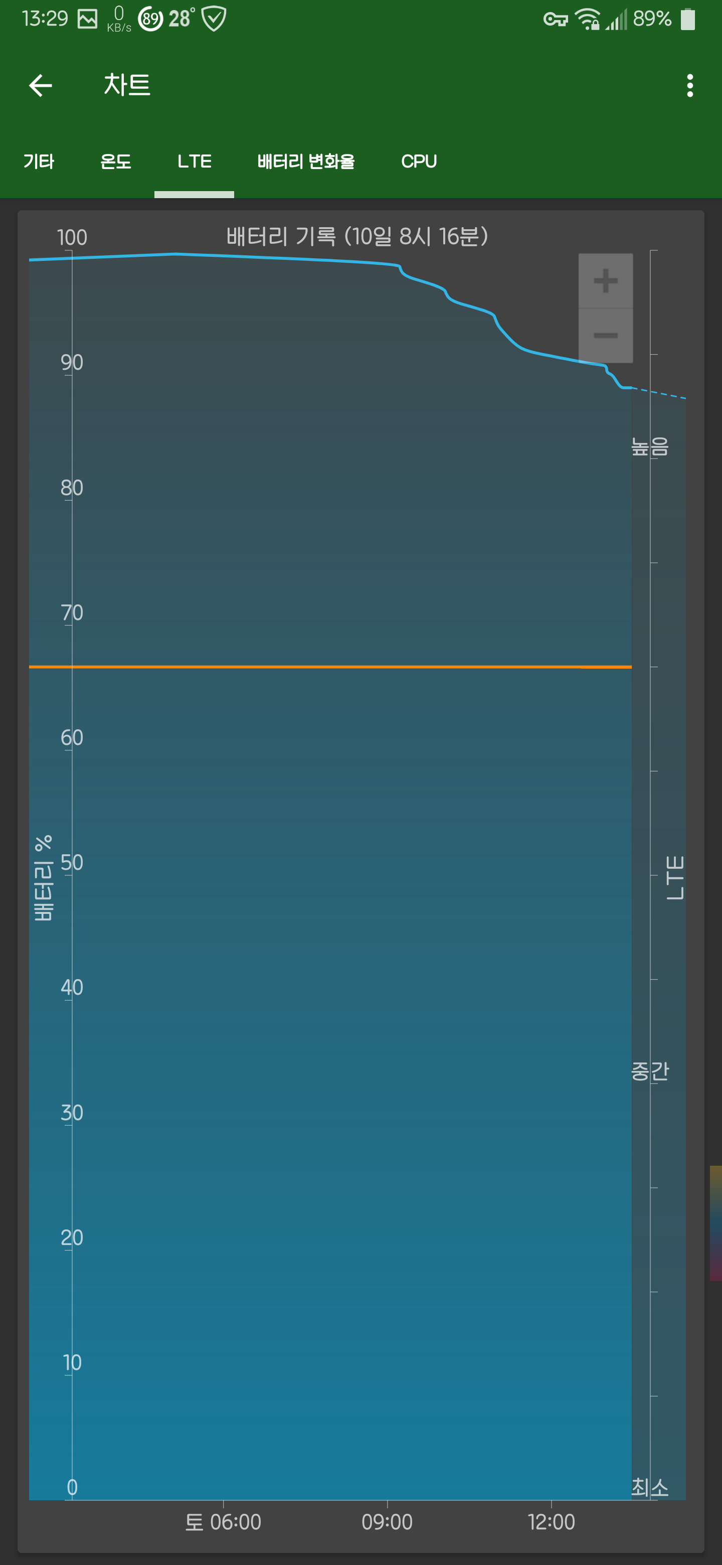 테스트 : 100퍼 충전 후 좀 가꼬 놀면서 그대로 잠