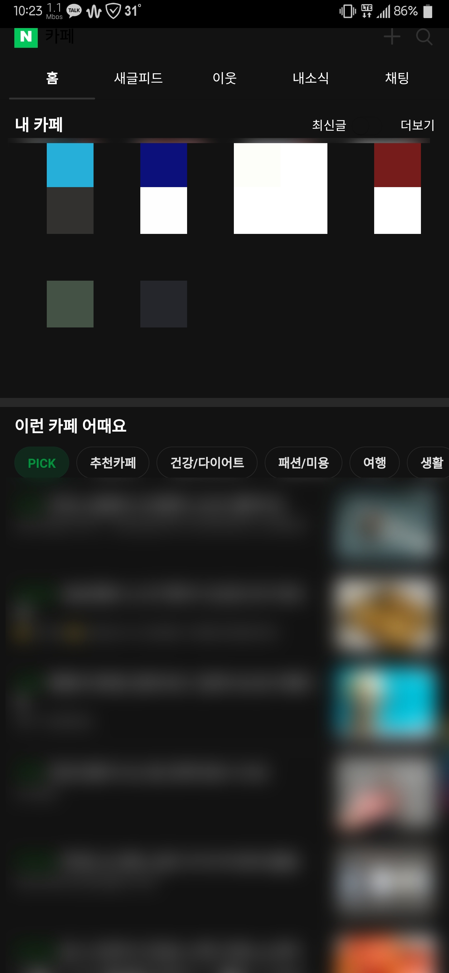 내 까페 / 추천 까페 이외 지역, 이웃 홍보등 제거