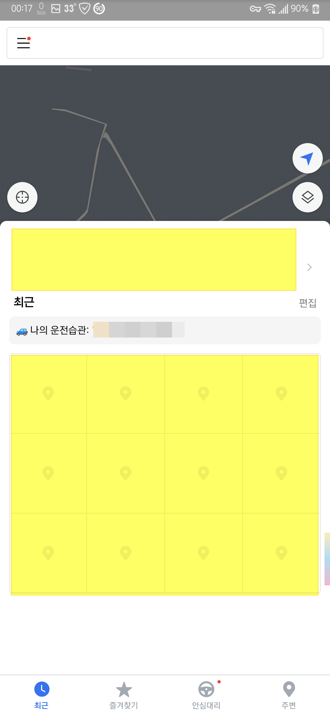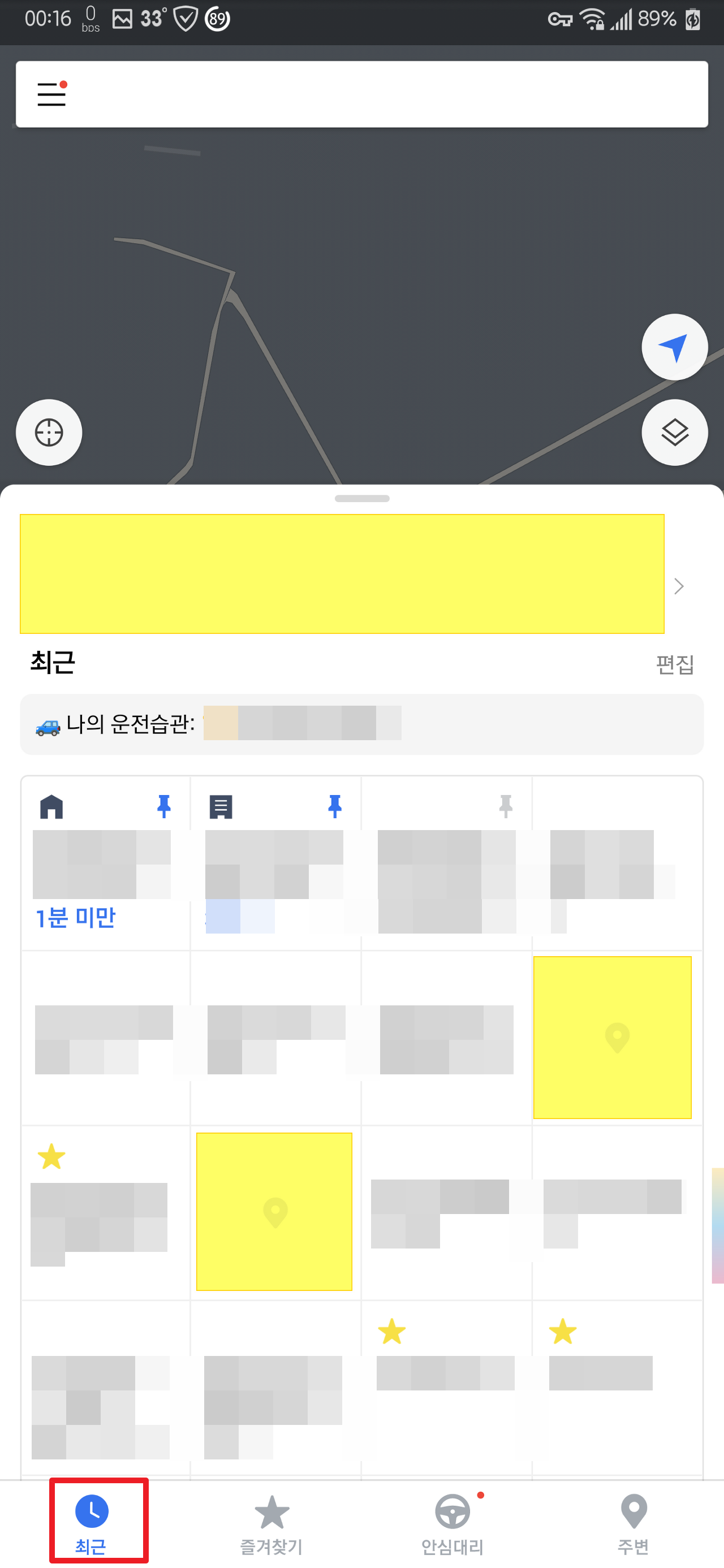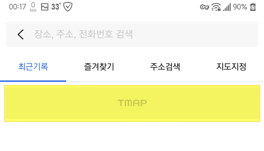 - 티맵 메인의 최근으로 검새기록 삭제 상태 입니다 / 광고 있는 경우 여기서도 표시가 되죠