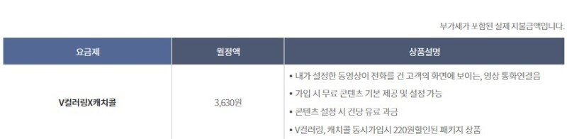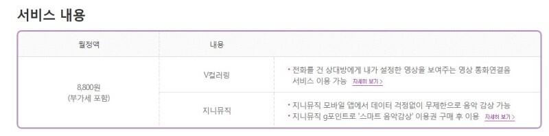 부가서비스는 아래 표같은곳에 보시면 되구요
