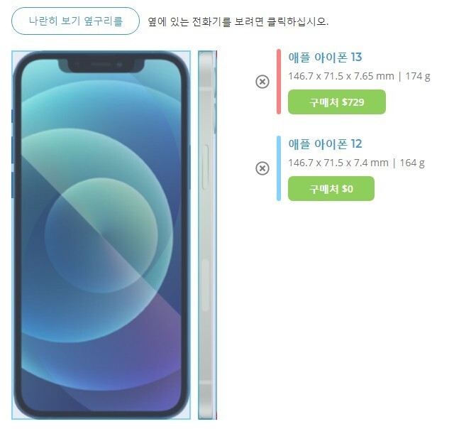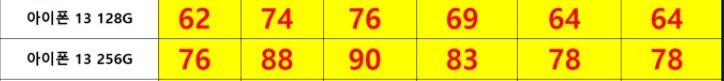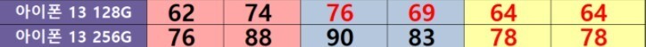 하지만 아이폰13은 기본이 128g 라서 128로 비교하셔야 합니다