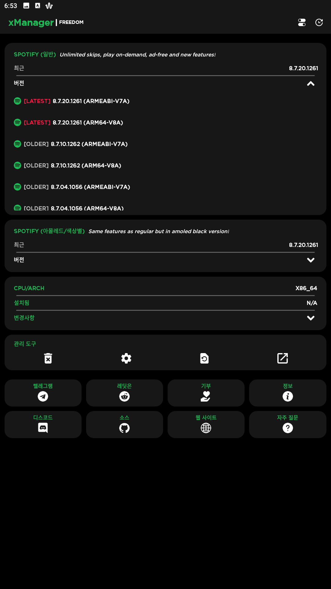 가끔 늦게 Spotify Mod가 뜨는 경우는 개별로 올리는 경우가 있는데 그땐 오픈방 앱창고에 올려 둡니다.