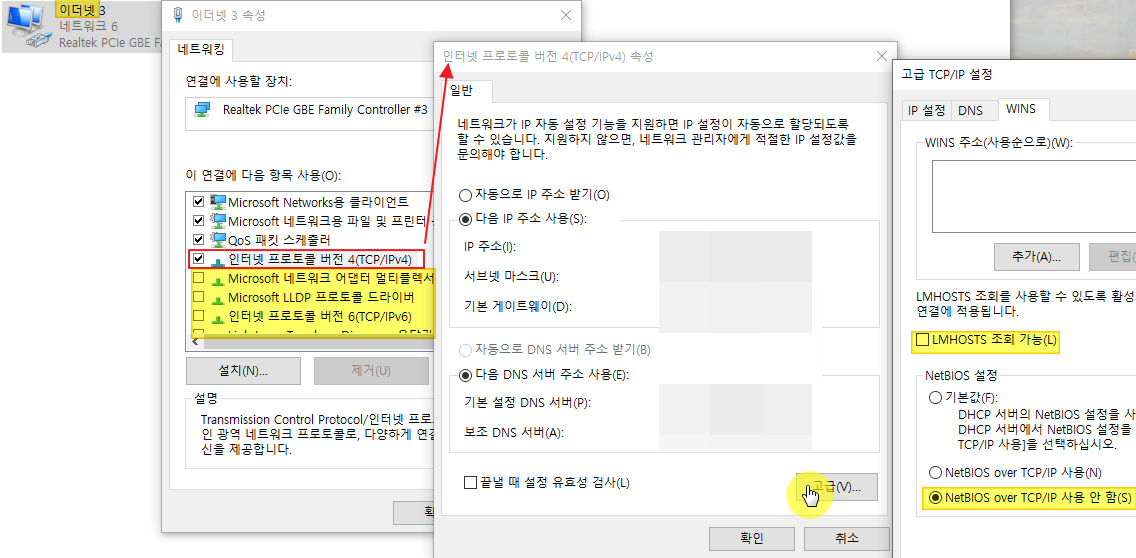 f - 네트워크 연결 항목 / 활성화된 LAN, Wifi 모두 적용
