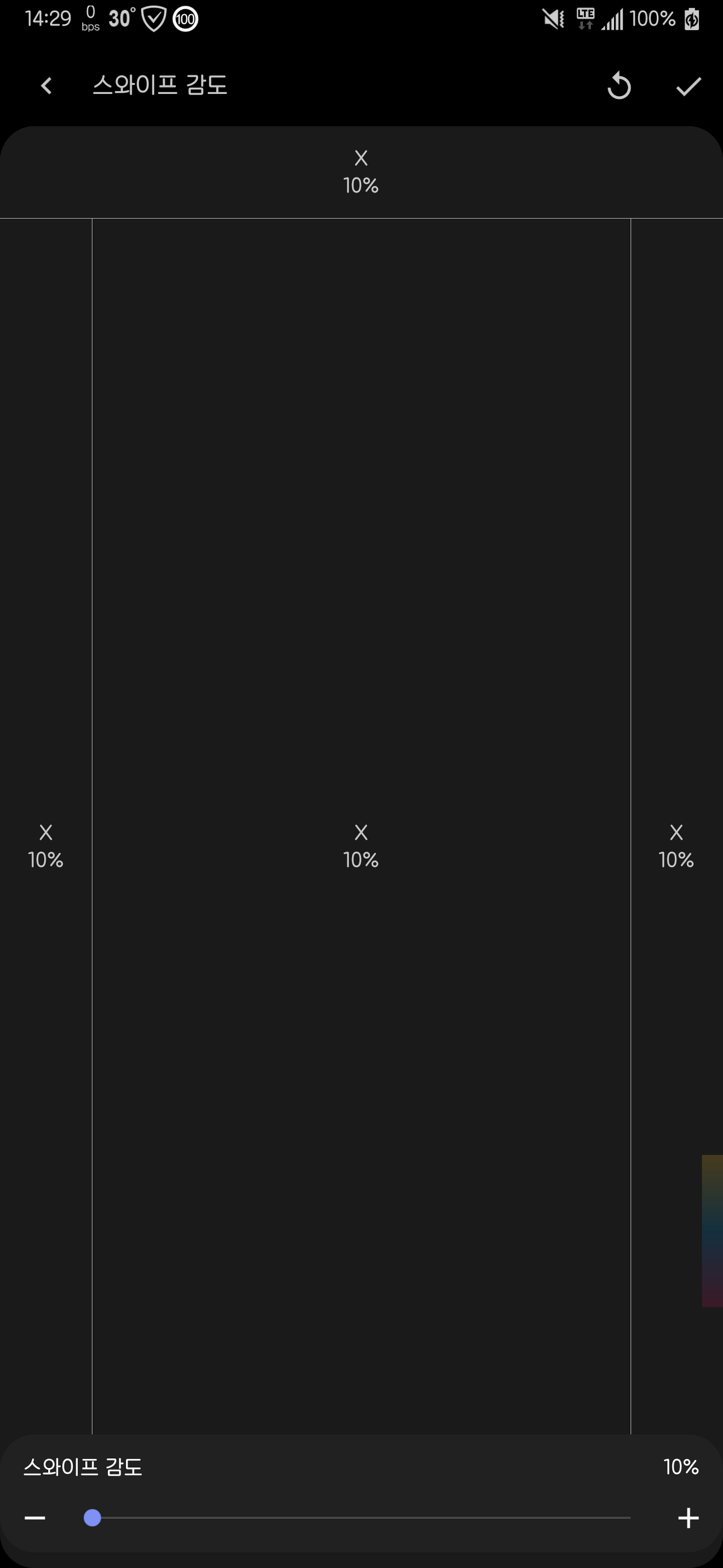 그리고 감도 조절에 반응할 민감도인데 하단에만 150% 적용 했어요