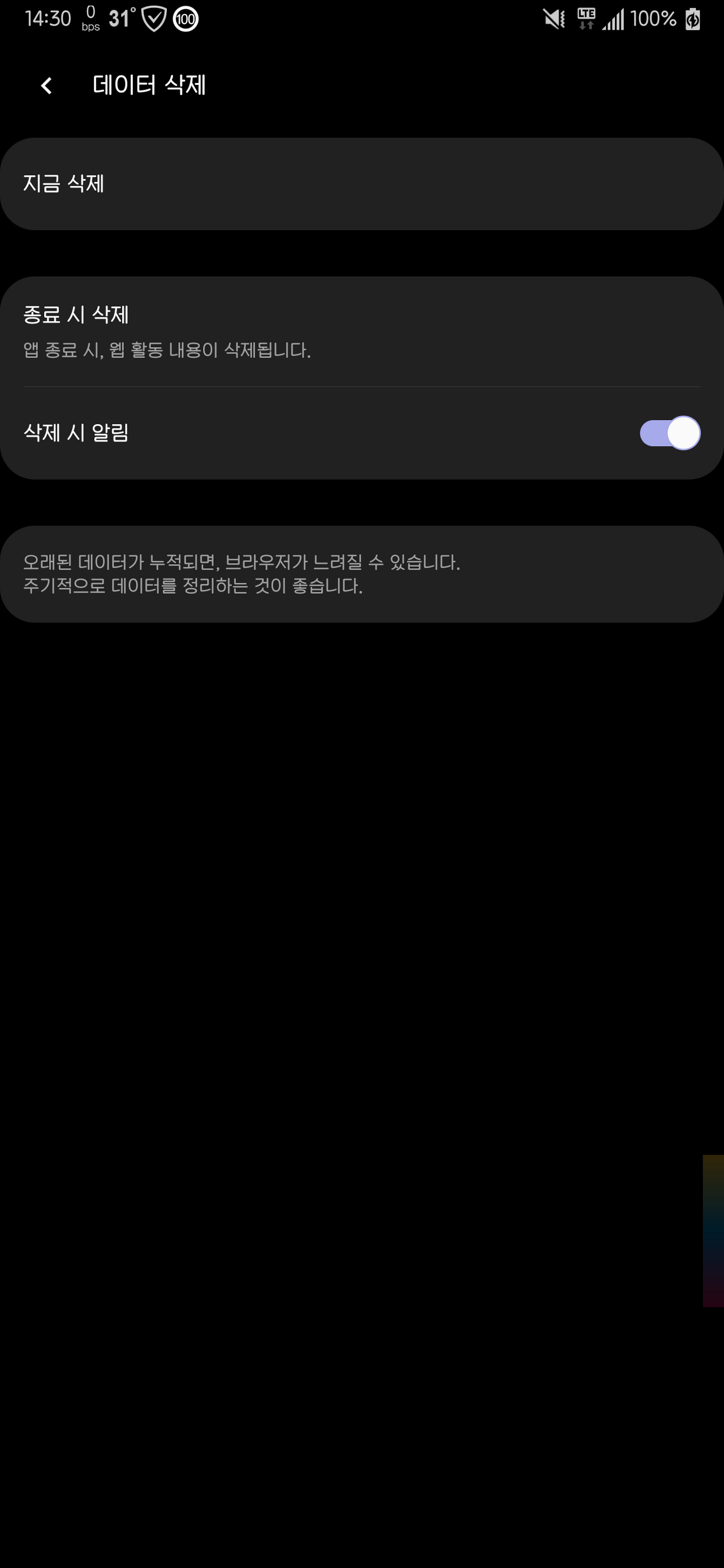 그리고 [종료 시 삭제] 메뉴는 On, OFF로 선택이 됩니다