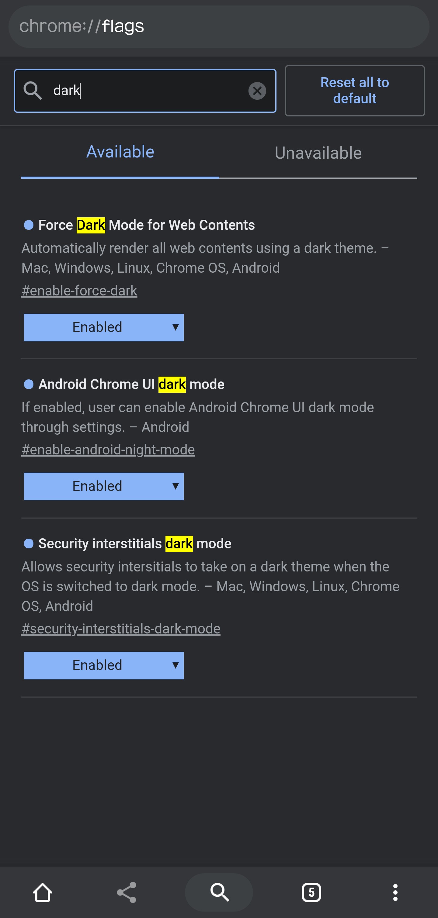 3. 검색에 "dark" 입력