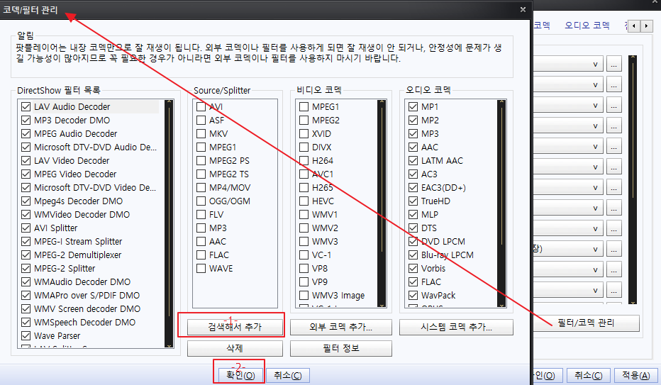 4.4.위 이미지 순서대로 적용해 설치된 코덱을 다시 불러오는 과정
