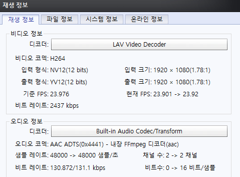 4.1.MPC 코덱 세부 설정