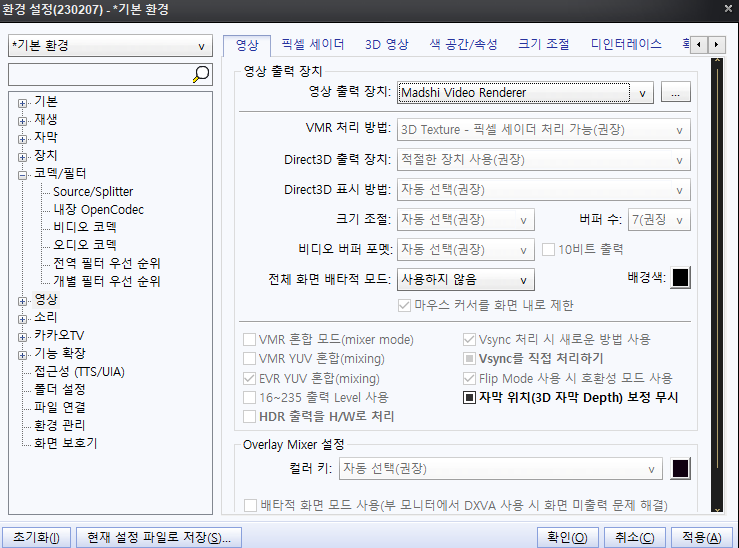 다음 팟플레이어를 쓰다보니 PC 저사양, 고사양일때 설정 방법이 의문을 가져서 보완해서 잘 쓰던중