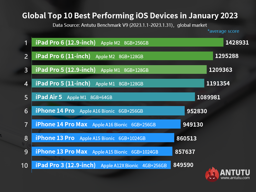 2023년 1월 성능 순위 - iOS 기기