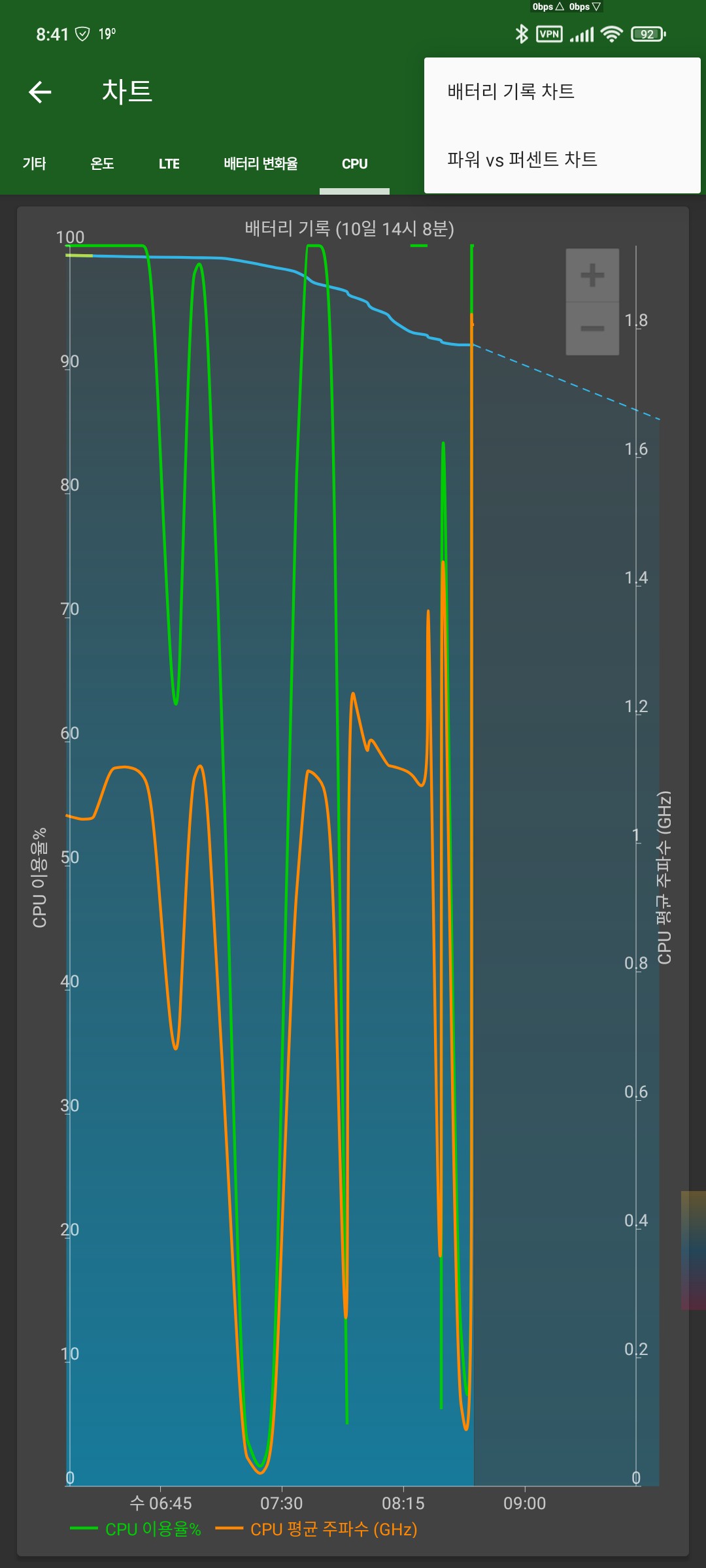 우측 상단 3점의 메뉴로 세부 차트를 볼수 있지만 현 화면의 그래프가 보기 더 쉬움