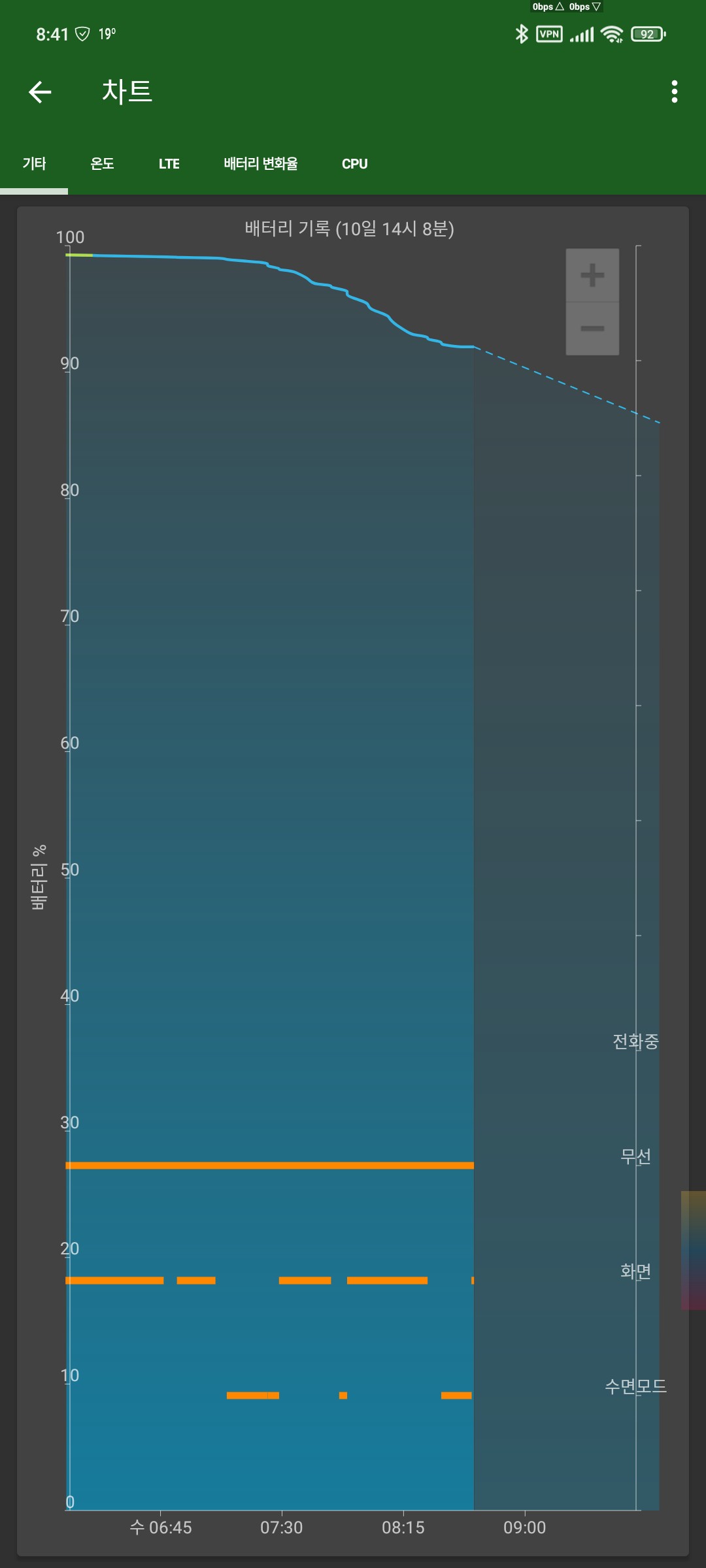 배터리 측에서 기록된걸 불러와 보여주는 역할일건데 뭣 때문에 소모량이 있는지 참 -_- 아직은 아쉽네요