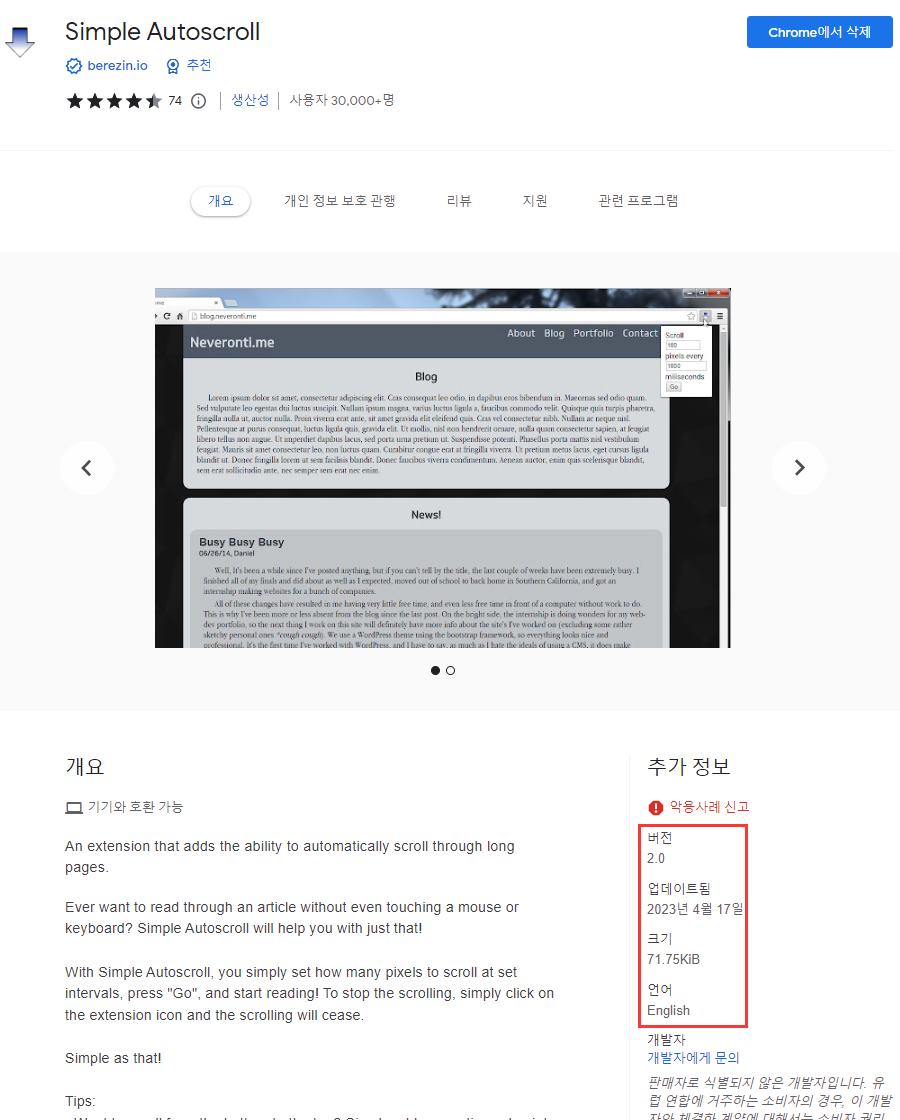 웹 브라우저에서도 자동 스크롤을 편하게 사용 가능한데 최근에 업데이트 되면서