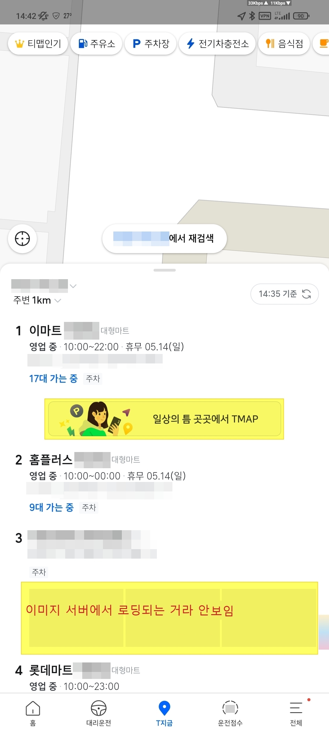 지금 어디에서 장소 하나 들어가서 보이는 이미지 부분도 이미지 서버를 막은 상태다 보니;;