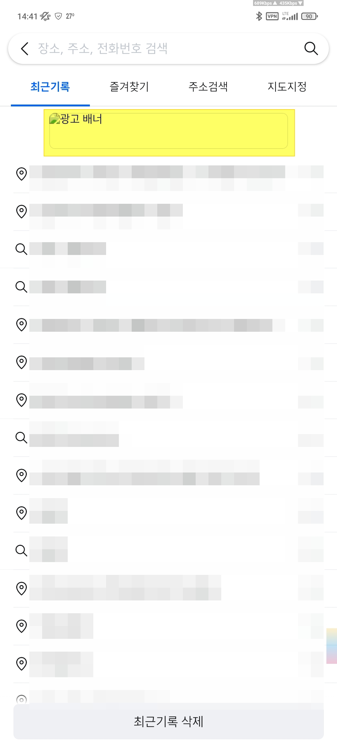 애드가드에서 차단을 해제하면 갈림길의 길 방향 표시 이미지와 지금 어디 등의 이미지와 광고 이미지도 보이긴 합니다만