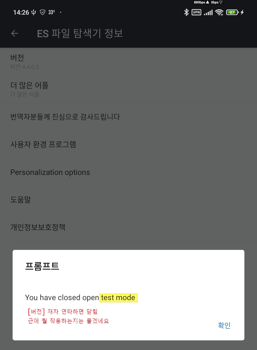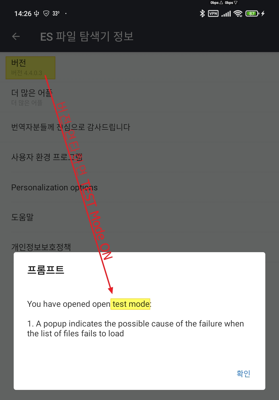 정보를 연타하면 test mode 활성화 되는데 뭔지 몰겠네요 다시 정보 연타 해주면 해제 되요