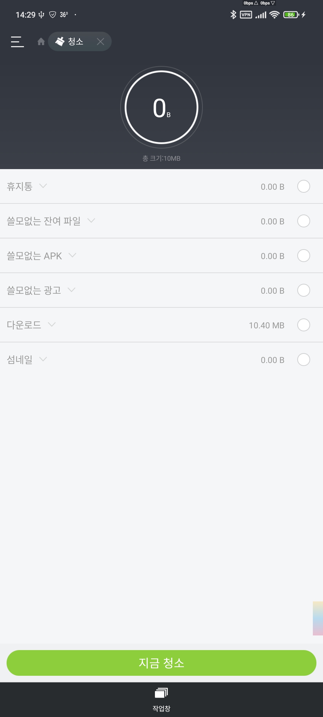 메인에서 확장 기능의 툴의 [청소기] 누르면 보이는 표시 입니다