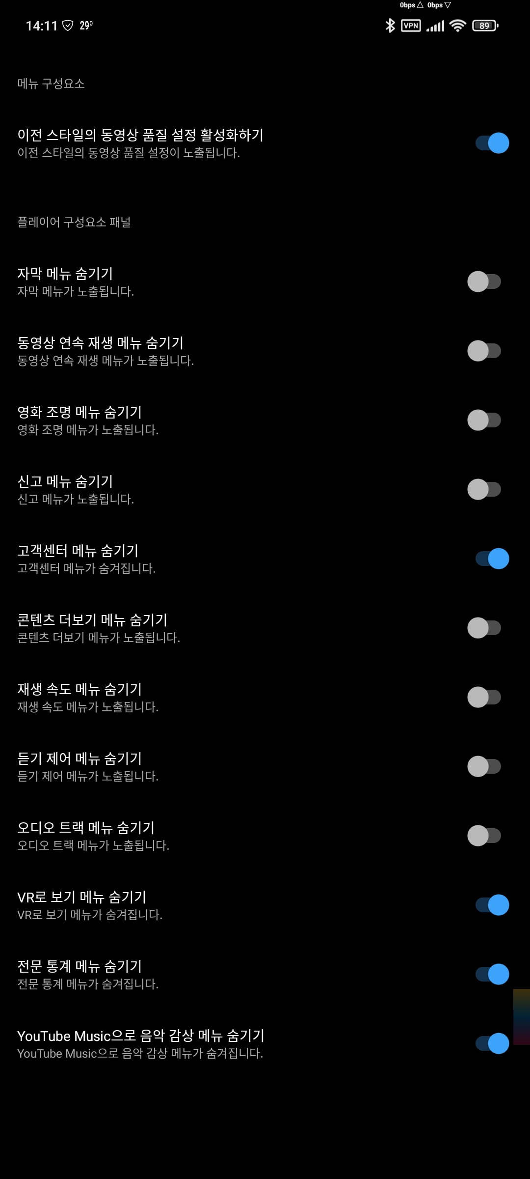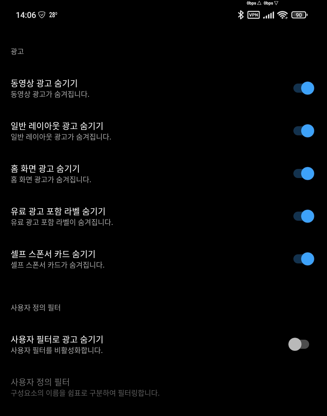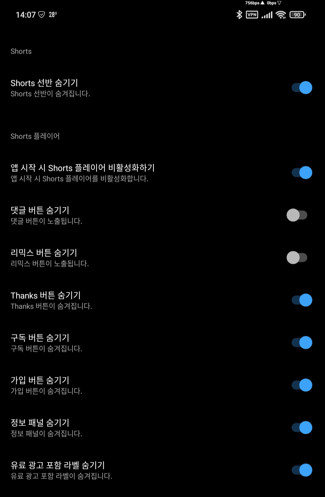 Youtube ReVanced Extended(리밴스드 확장) 설정 정보