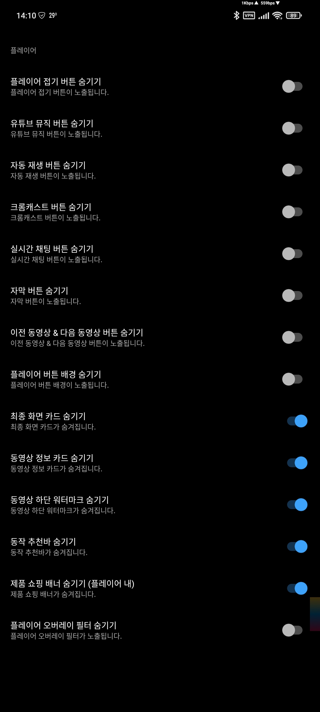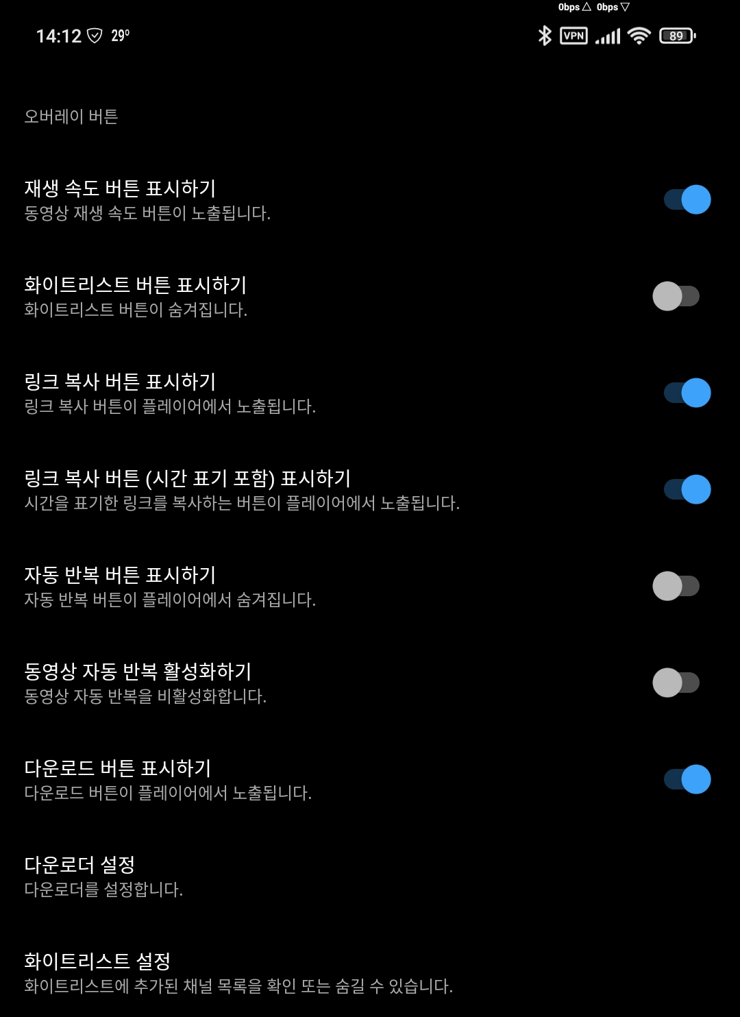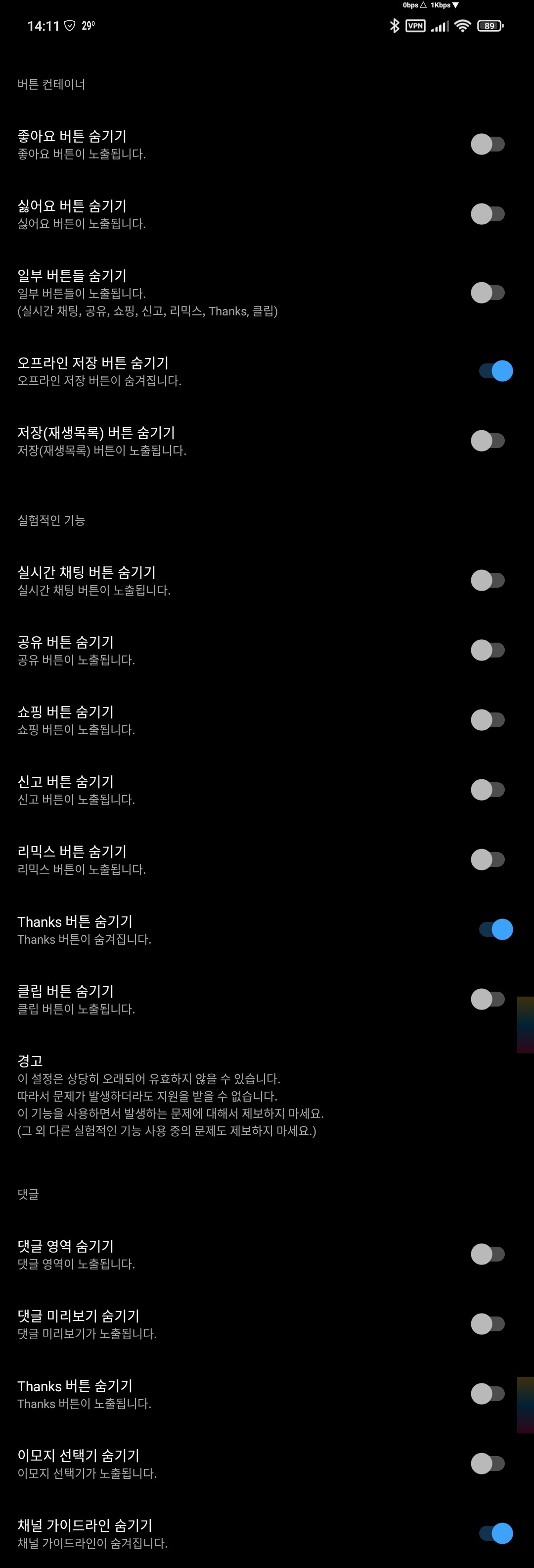 Youtube ReVanced Extended(리밴스드 확장) 설정 정보
