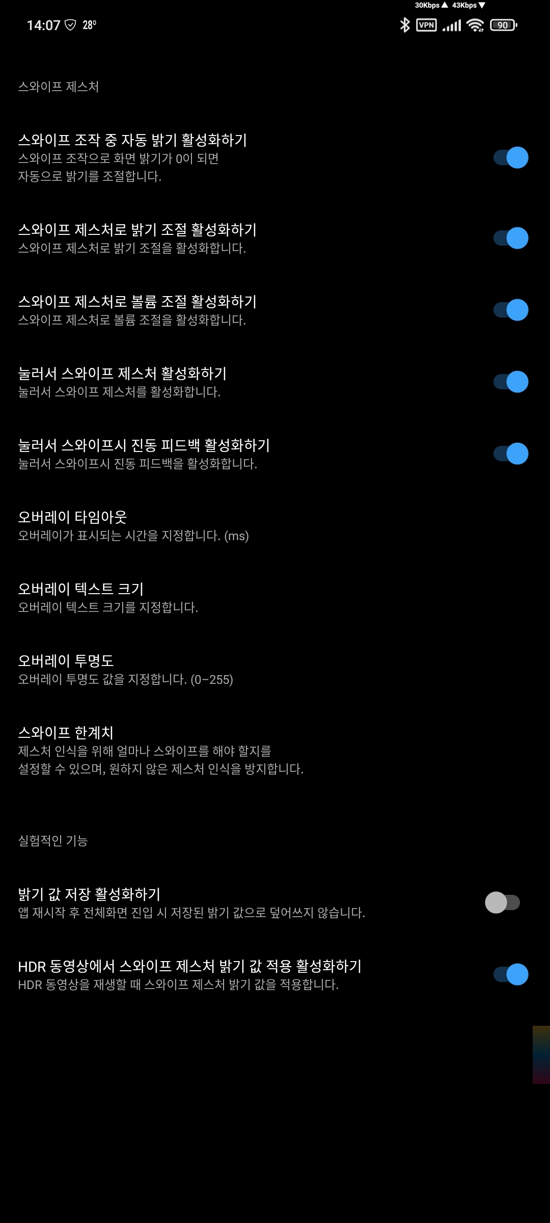 설정을 들어간 후의 추가 메뉴는