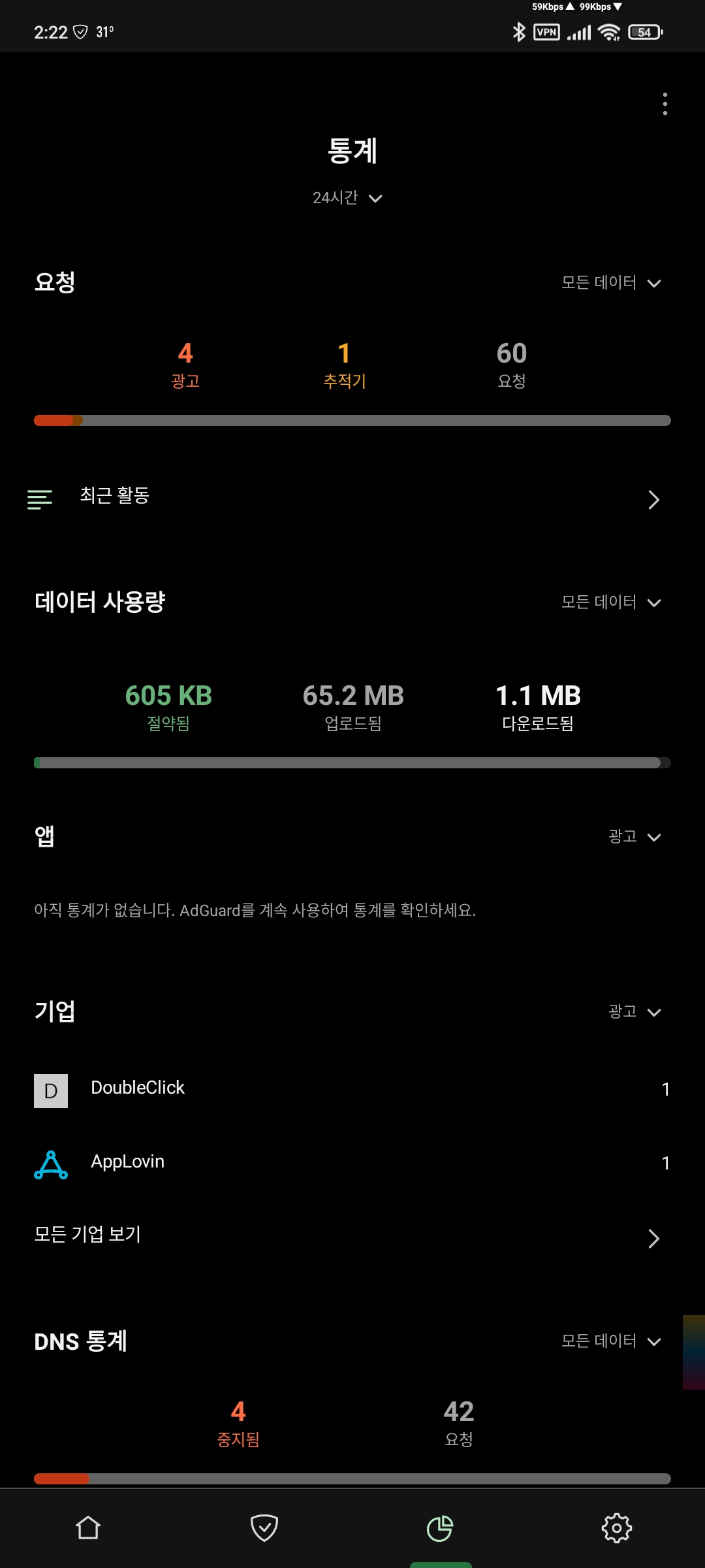 여기서 [최근 활동] 부분을 누르면 실시간 로그 기록과 차단 기록을 볼 수 있어요