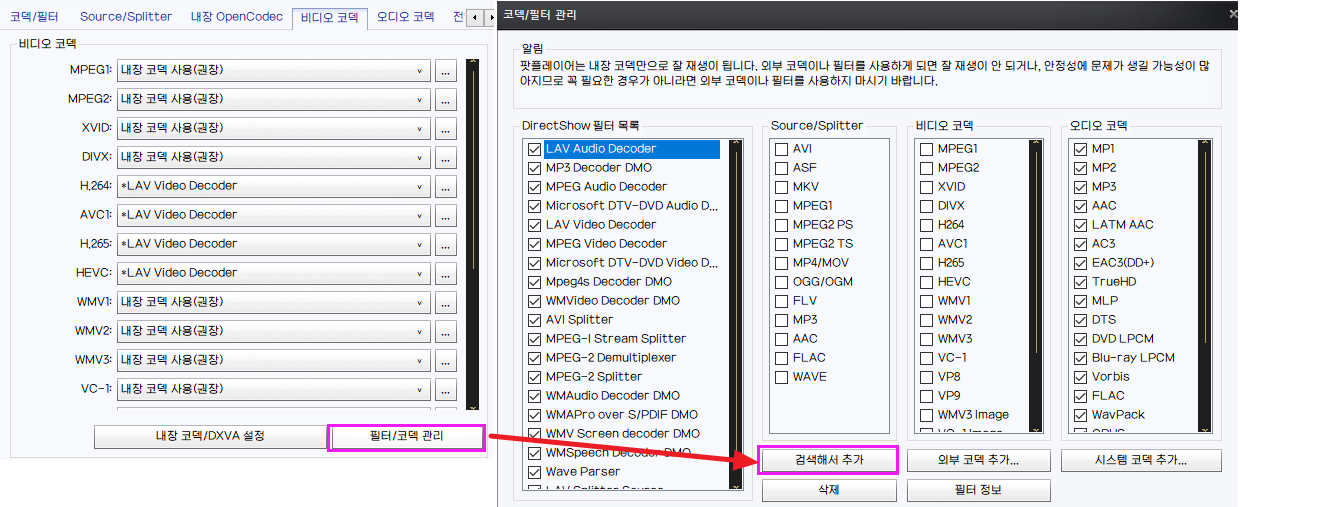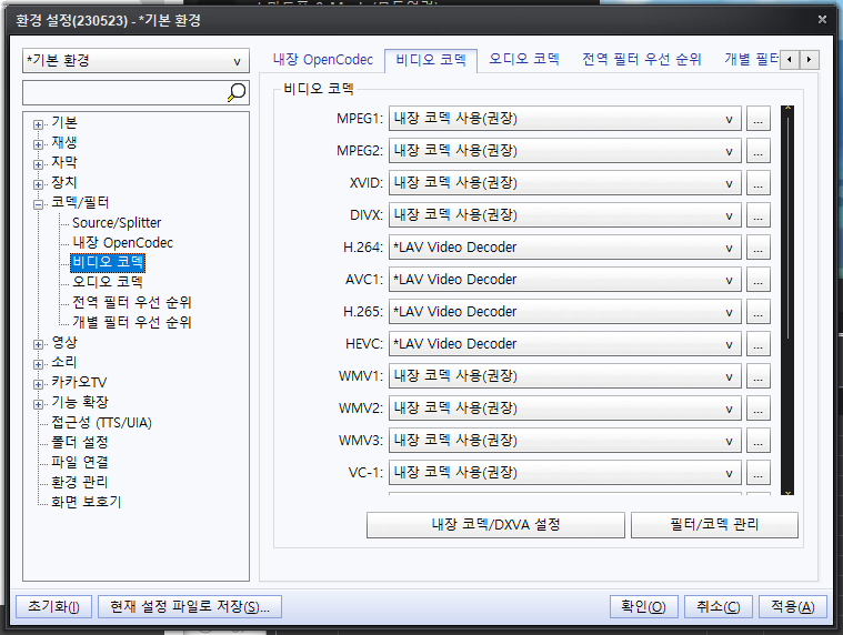 H.264, AVC1, H.265,HEVC = 모두 [ *LAV~ ] 로 적용 해줍니다