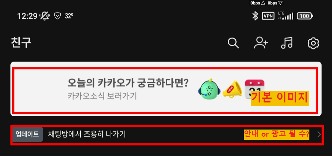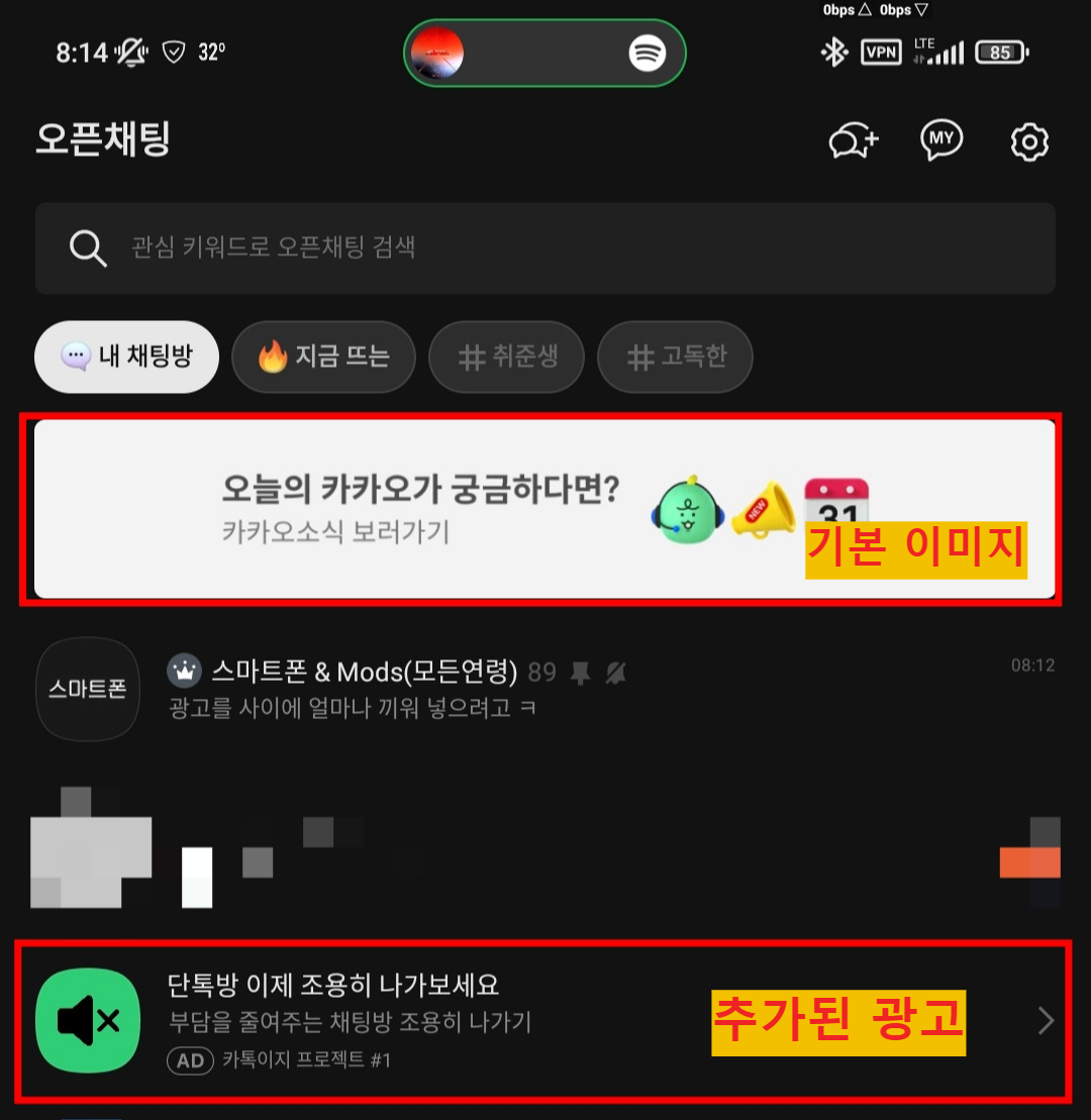 이미지 형태 광고는 차단 해서 카톡 앱의 기본 이미지만 표시되 있는데