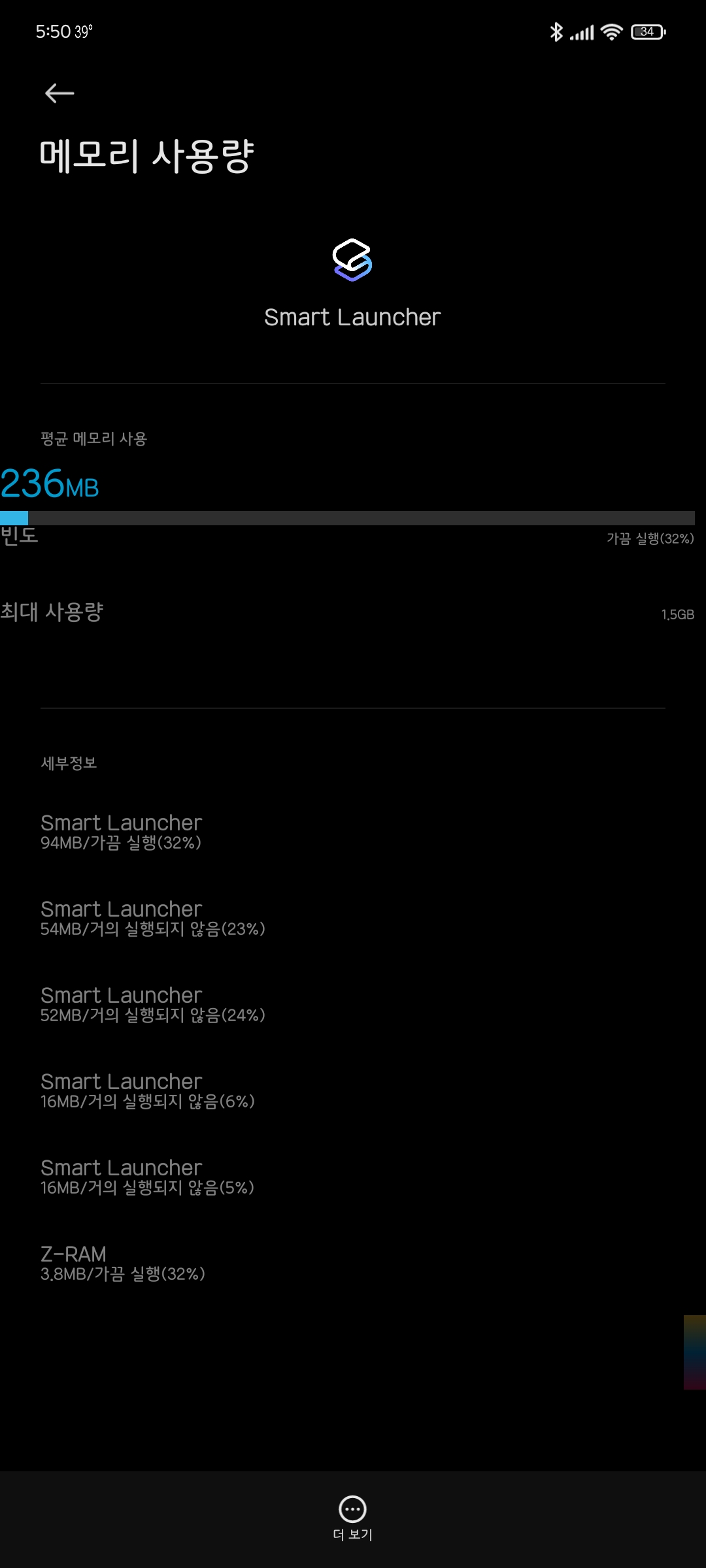 초기 설치 후라 좀 많이 먹고 안정화 되면 200mb 이하로 떨어짐다