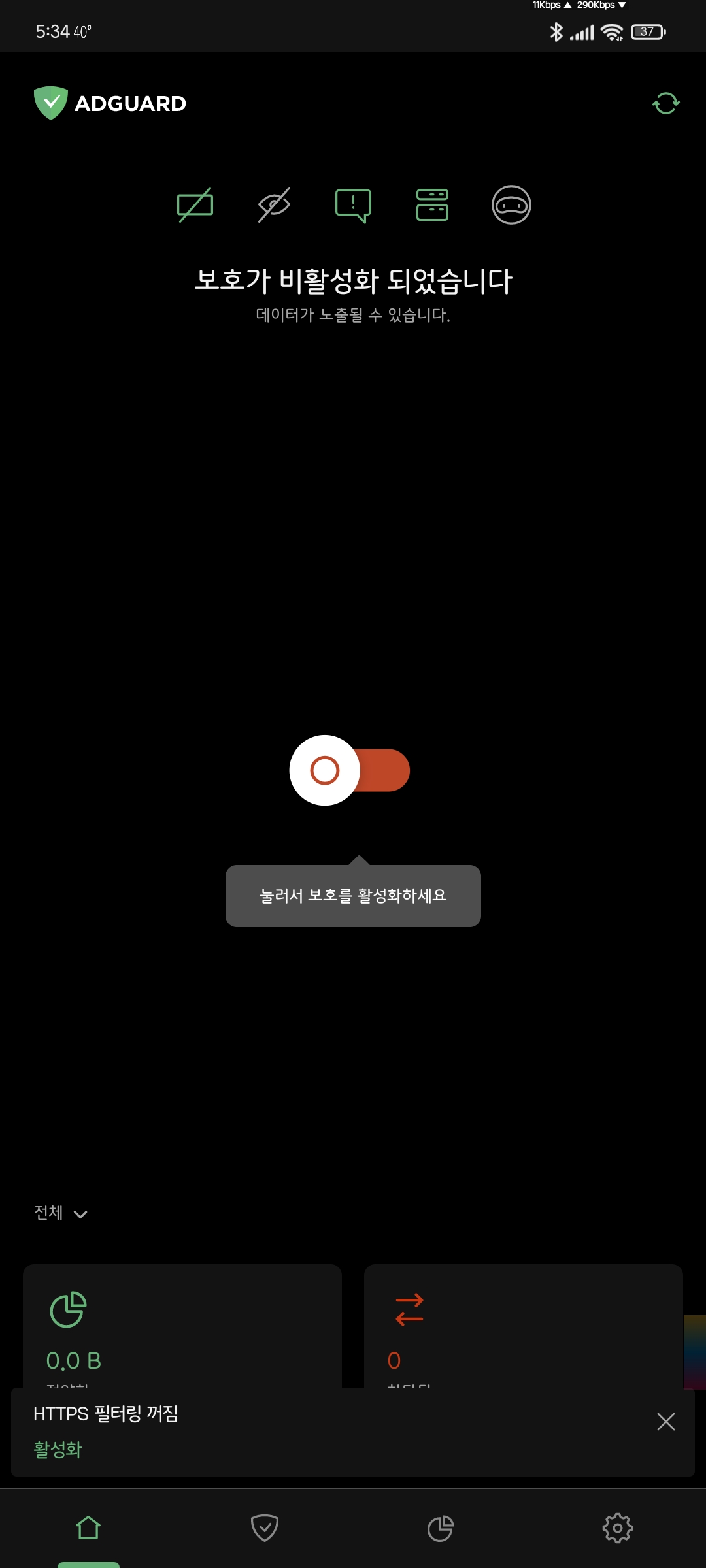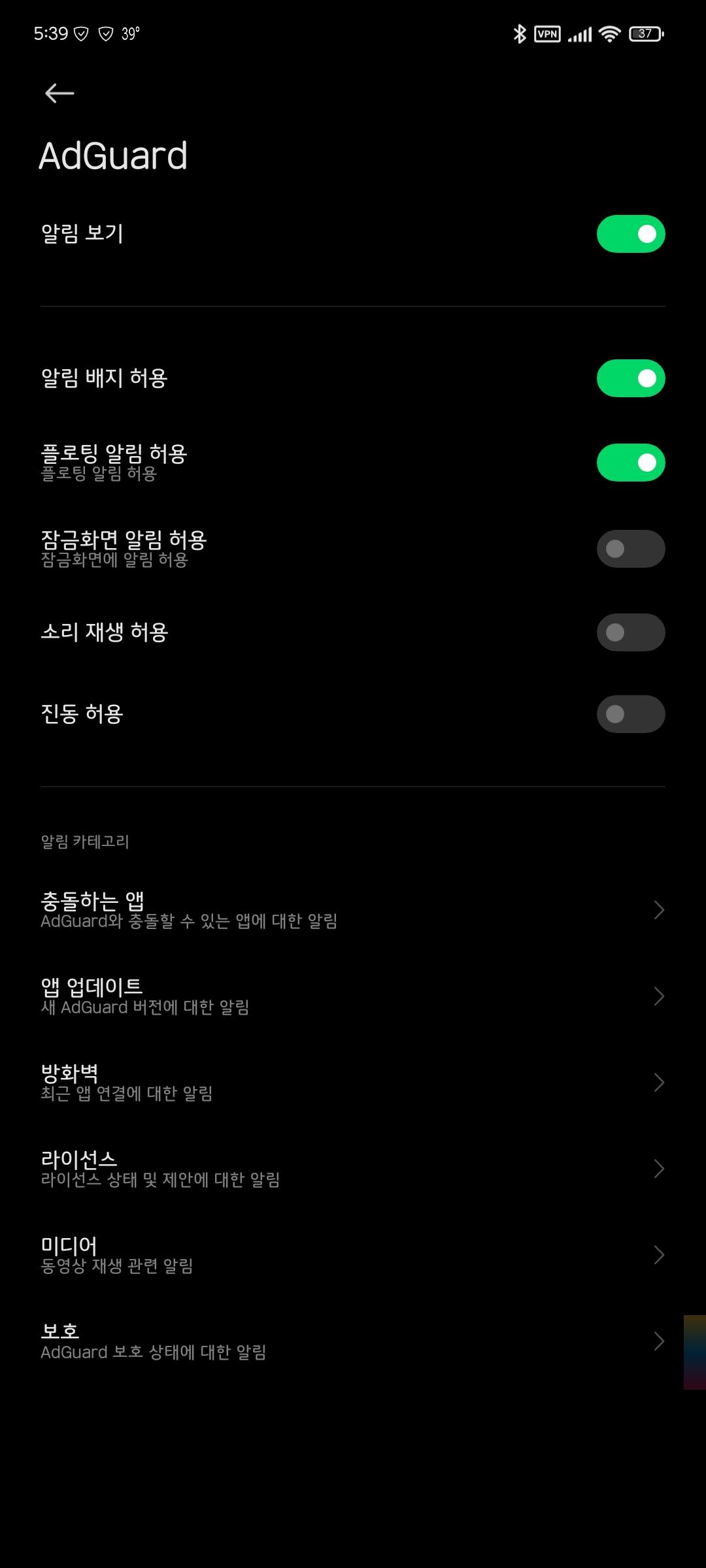 알림은 "보호" 를 뺀 나머지는 모두 해제 해줍니다