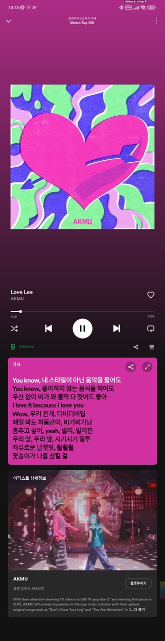 - 버전 확인 > 기존 삭제 > 새로 설치 > vpn > 로그인 > 저장 팝업에 저장 > 홈의 상단 설정에서 일부 적용 > Wavelet과 되는지 확인 > 해외, 국내곡 재생, 가사, 등등