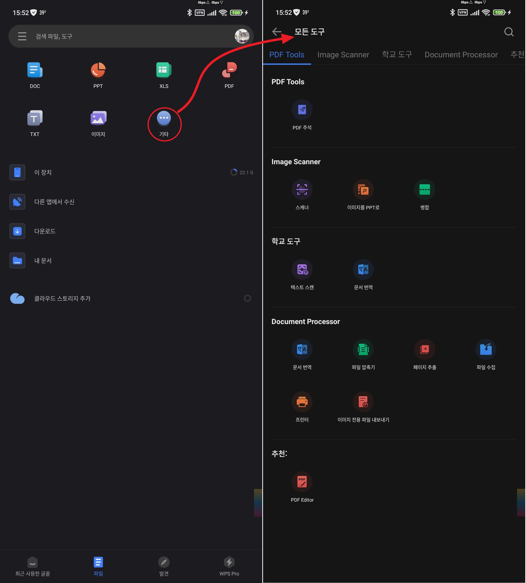 오피스 파일과 PDF편집에 아주 괜찮은 기능을 하는 WPS 입니다
