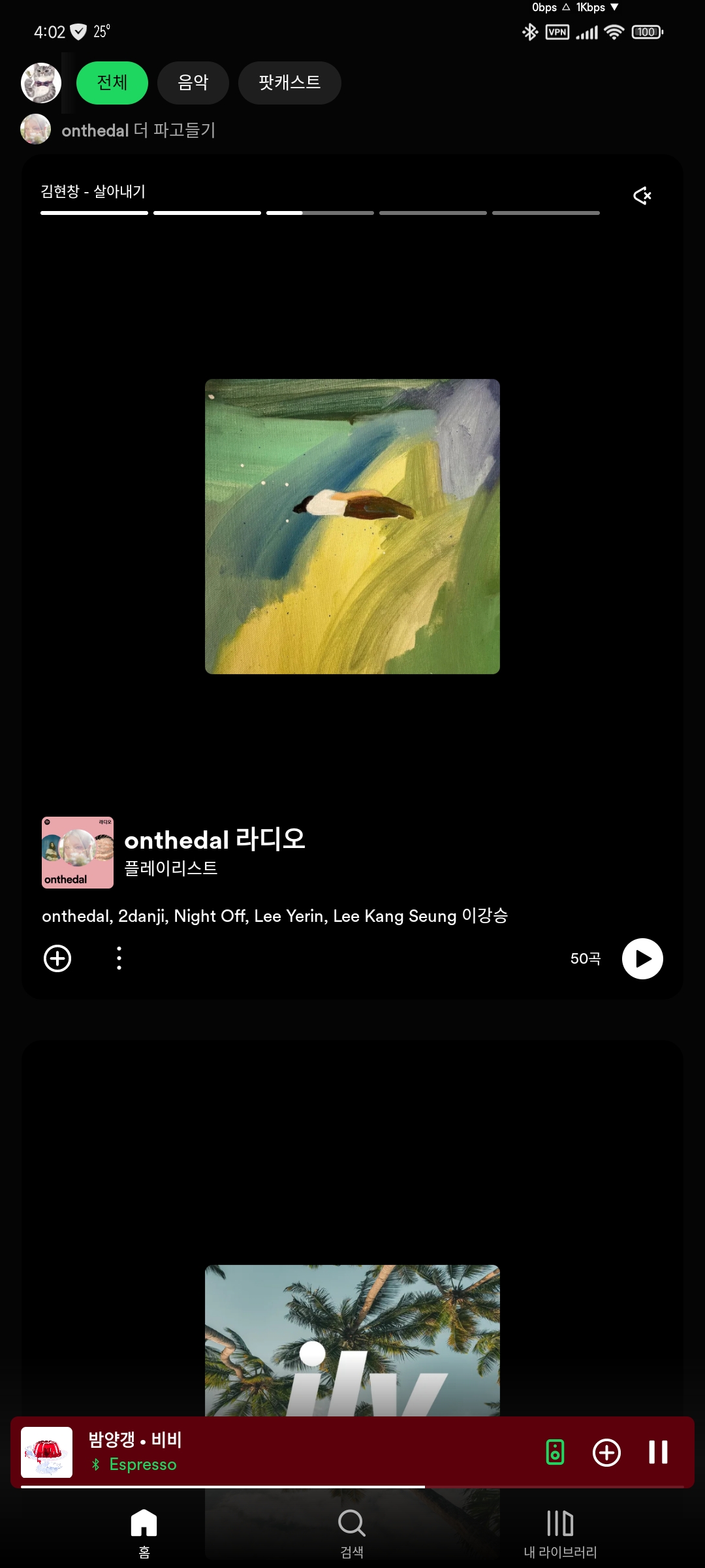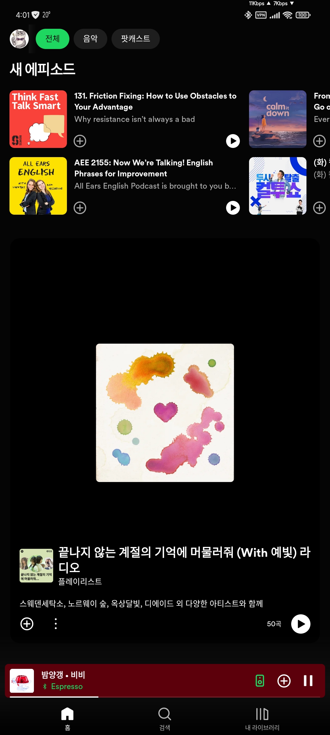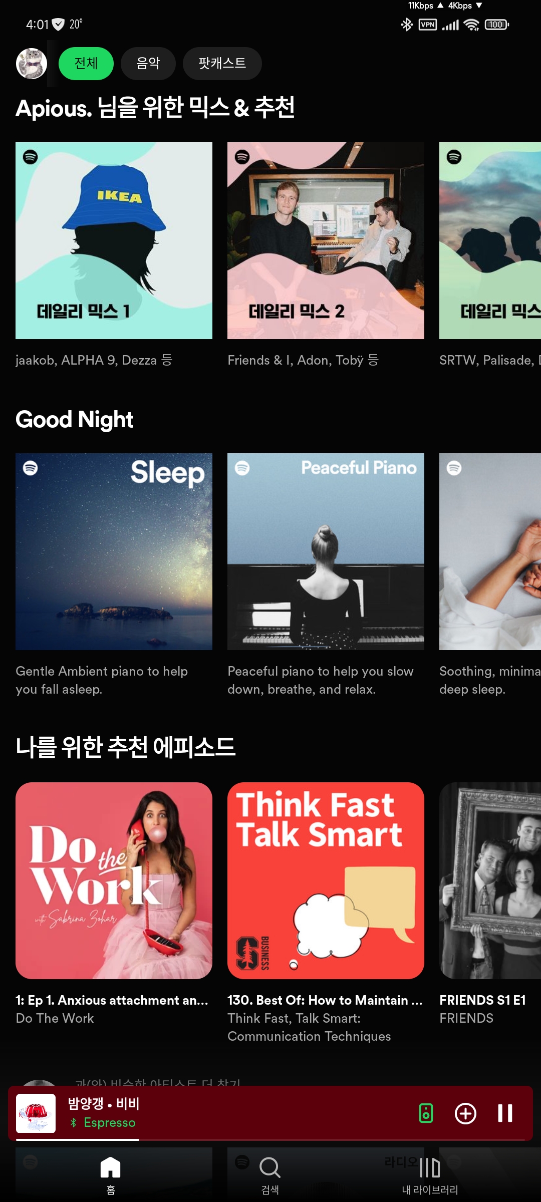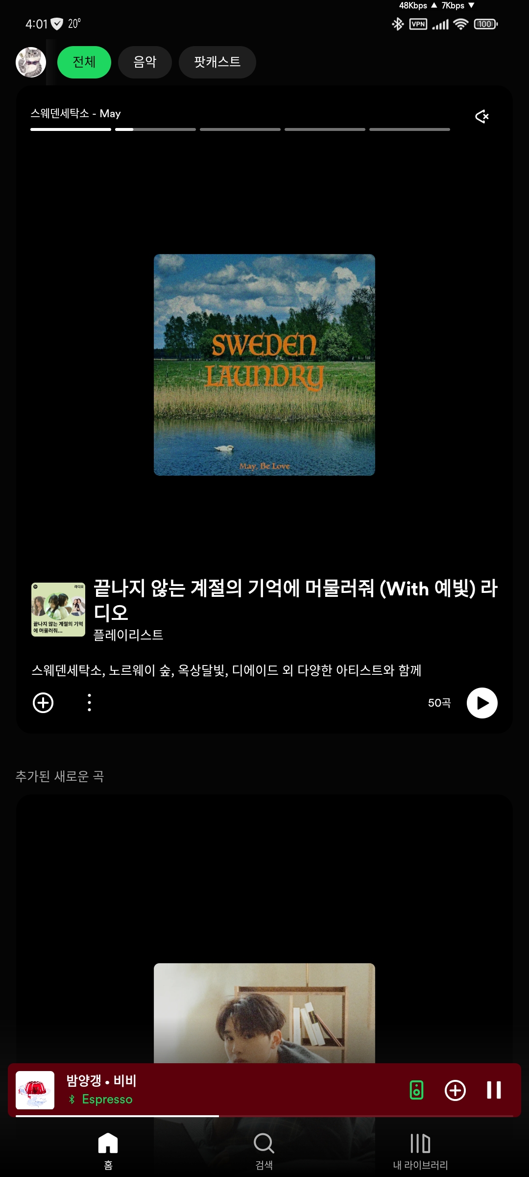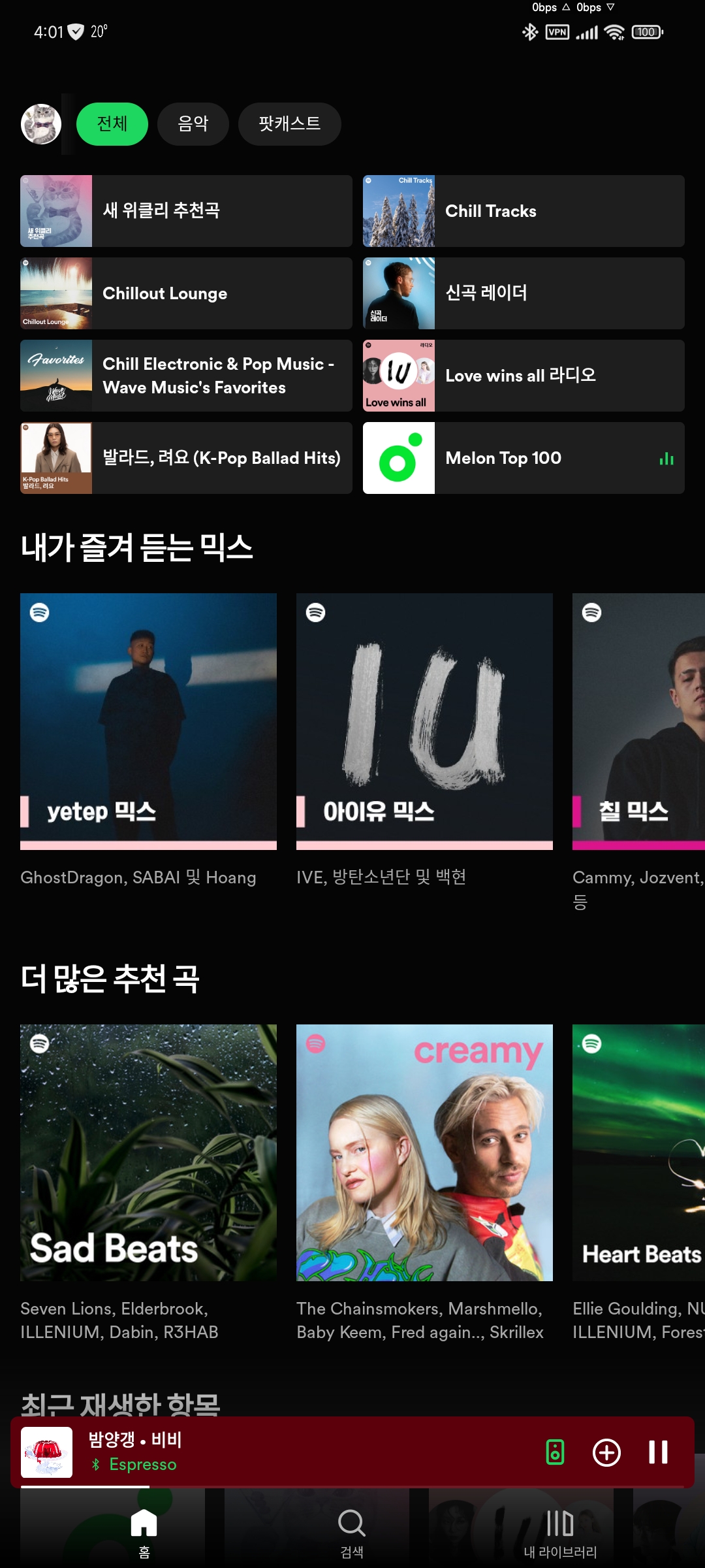 최근 스포티파이 메인 근황 입니다
