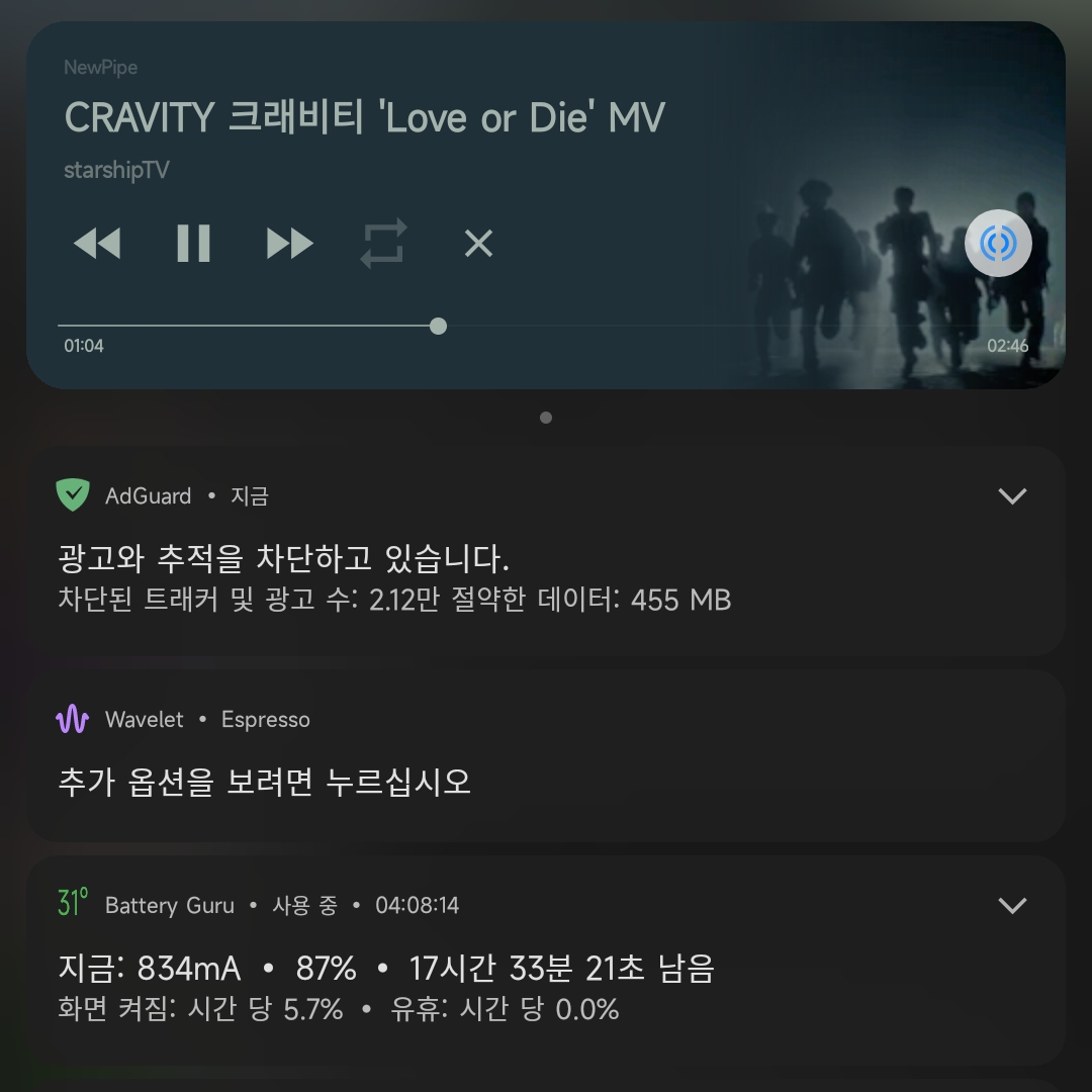 자주 사용해서 아는 거라면 [ 앱 정보 - 알림 ] OFF 꺼놔도 됩니다 어짜피 활성화 되는거 아니까~ 들음 딱 아니까~