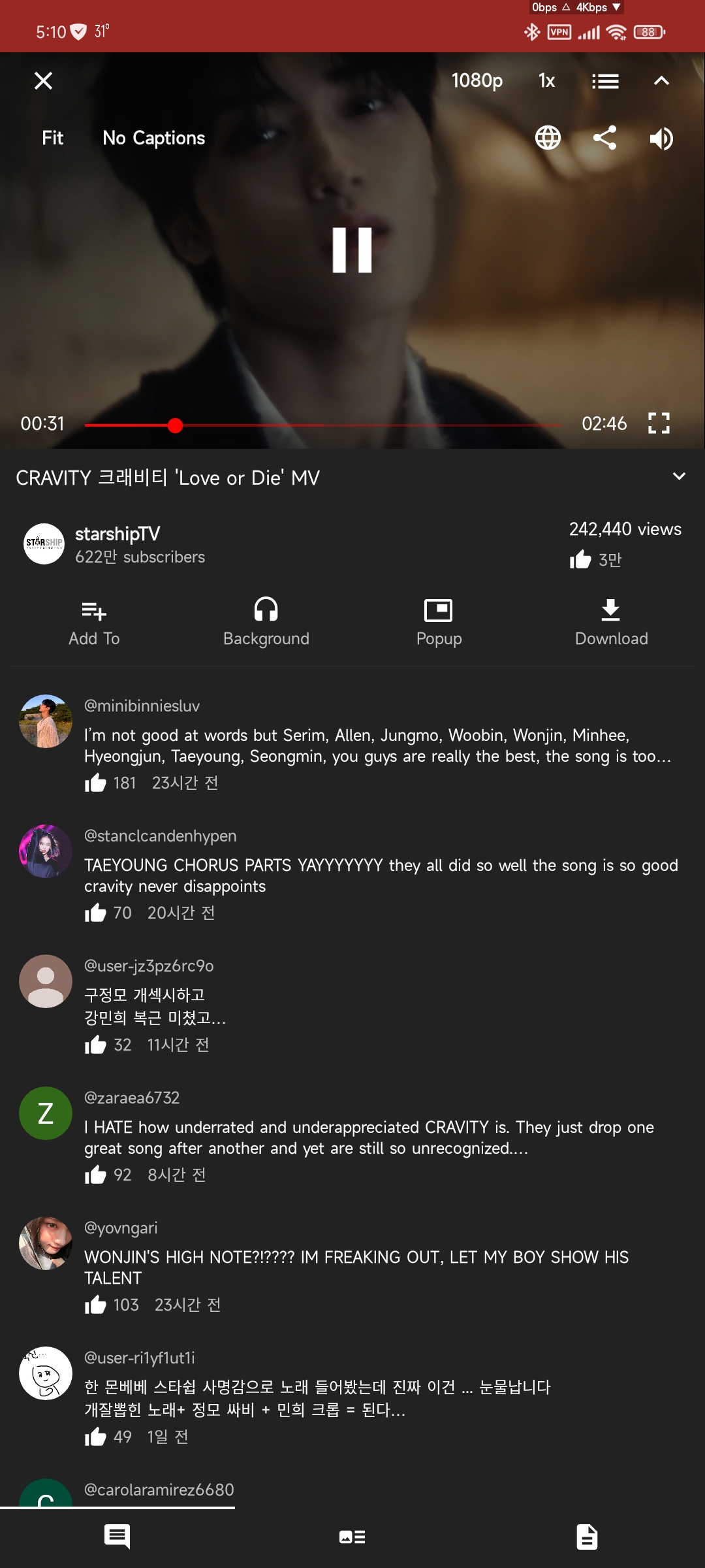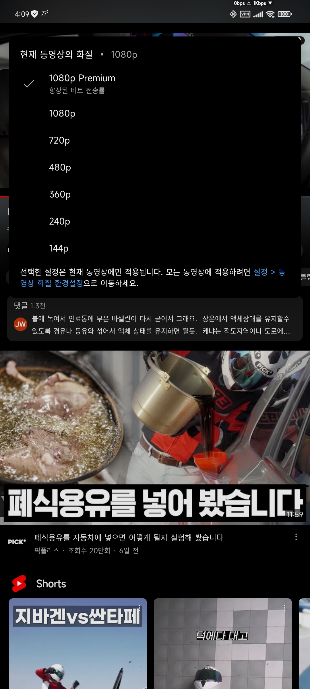 단 플레이 중에 옵션이 보이고 연결된 이어폰, 블투스피커 등에 따라 옵션이 다릅니다(없을 경우 미지원되 안보임)