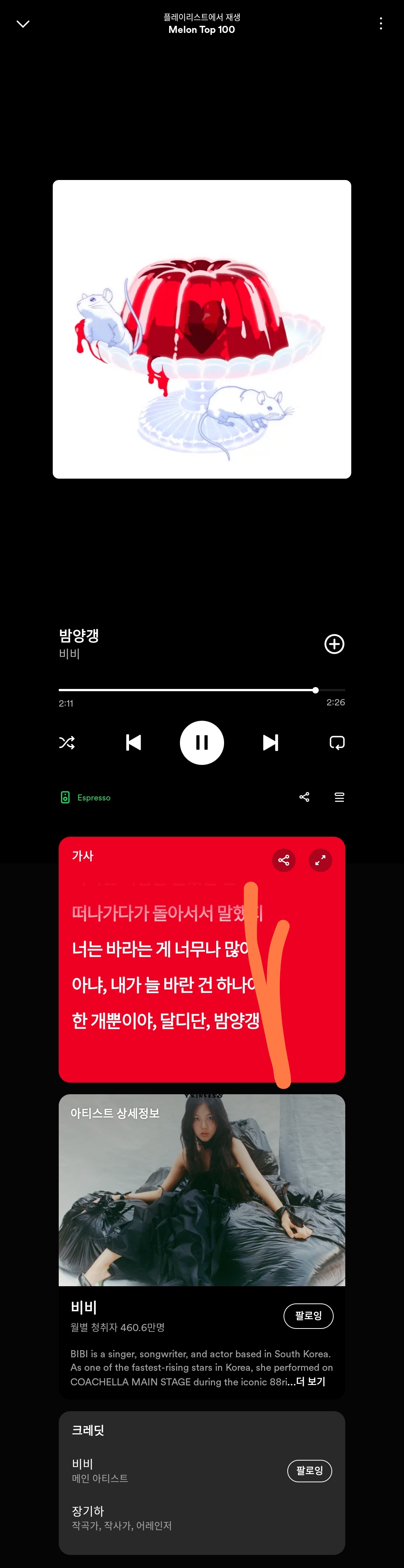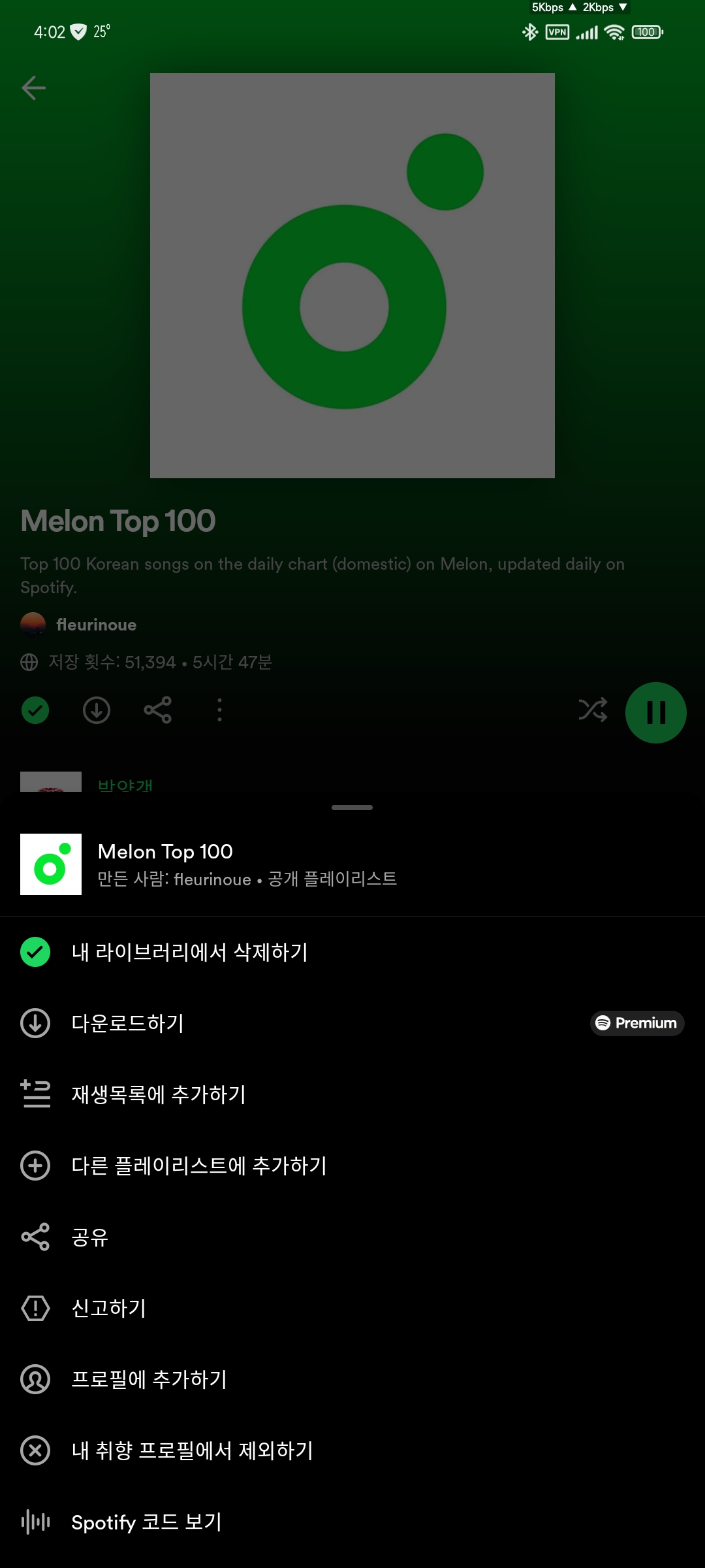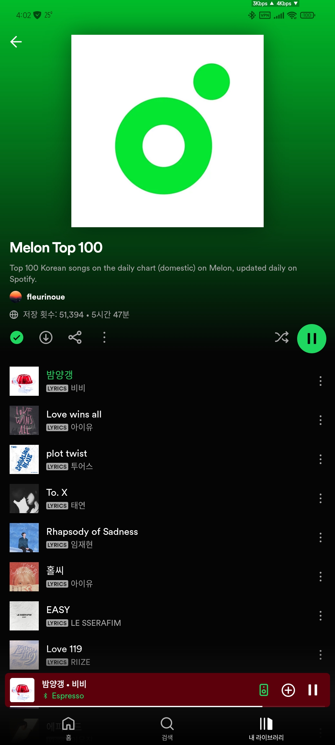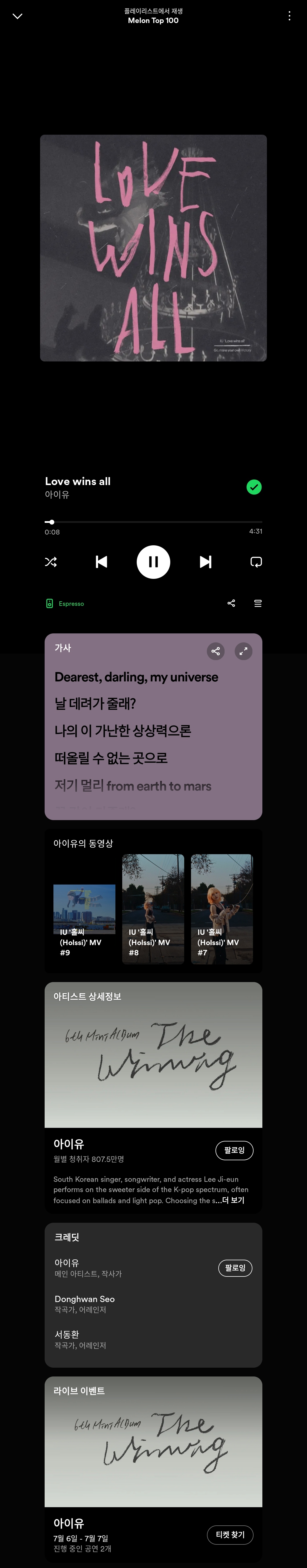 멜론 리스트인데 스포티에서 지정된게 아닌