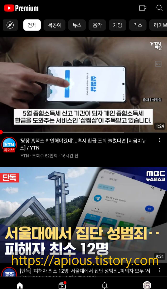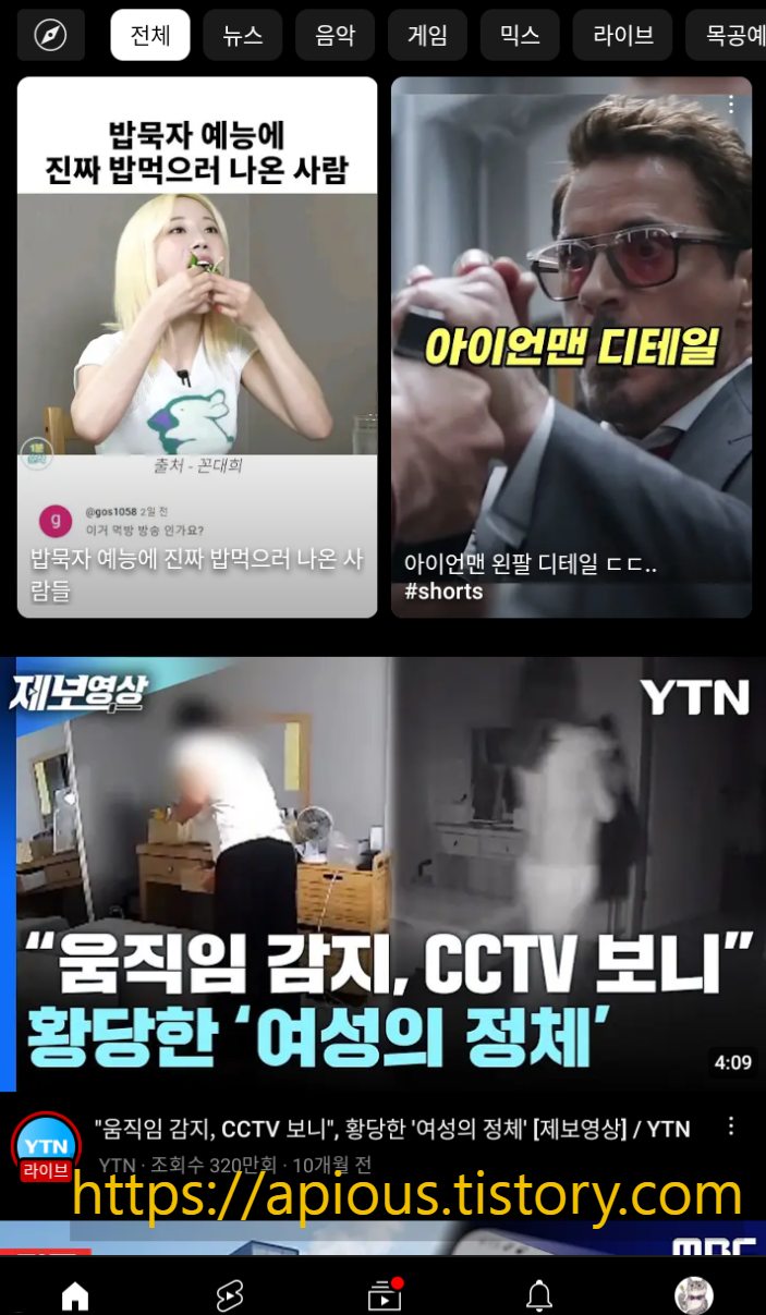 아참 유튜브 열자 마자 메인 변경 가능해요