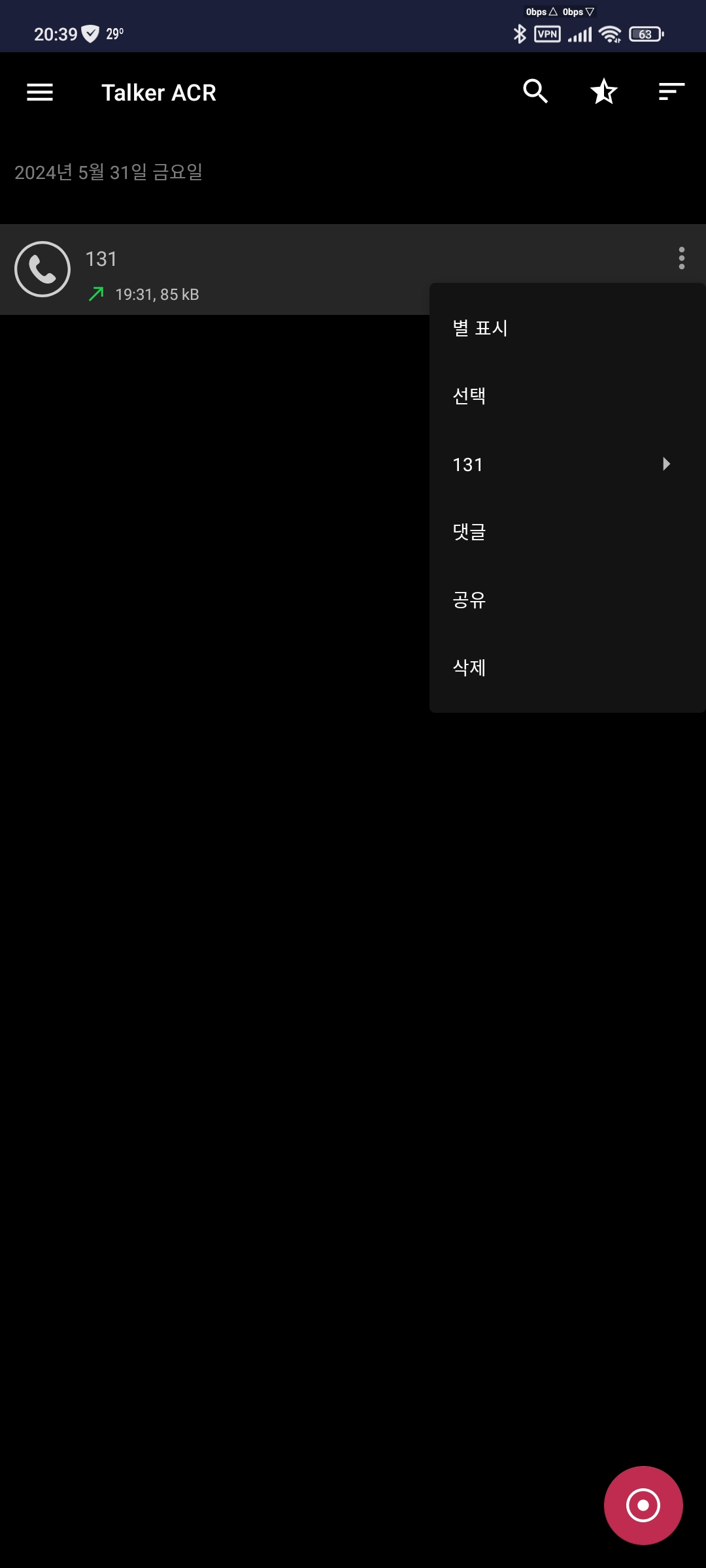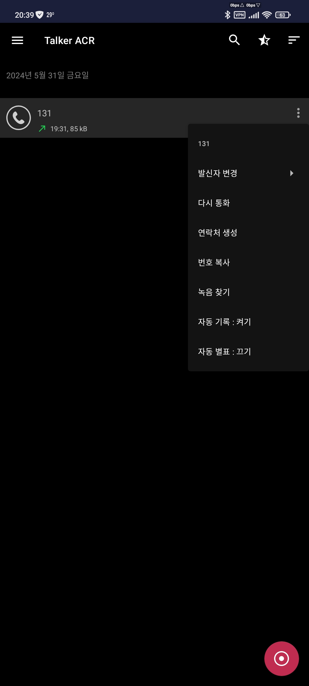 - 통화 녹음 후 발신, 수신 번호 별 메뉴