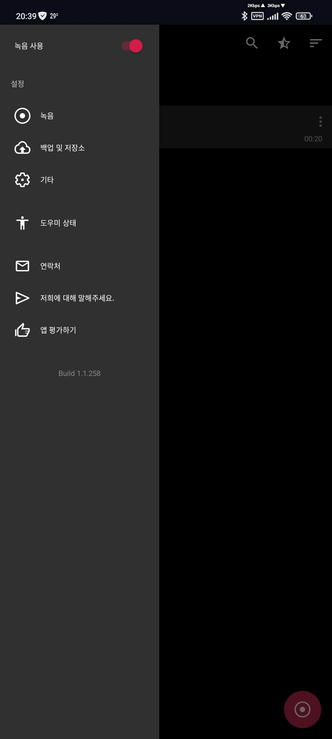 전화 통화 녹음에 그외 앱으로 통화하는 기능 역시 녹음이 되는 기능을 가지고 있네요