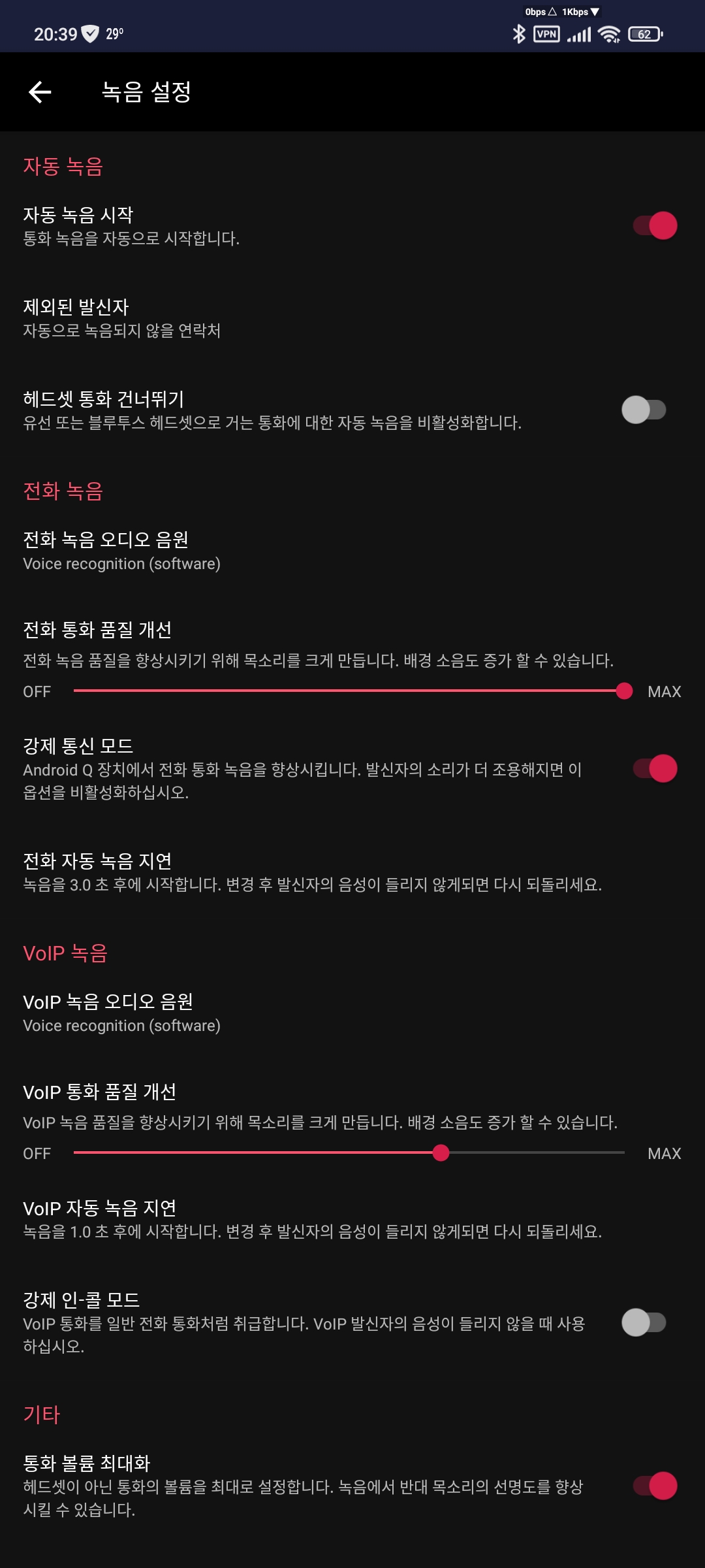 대체해서 ACR 이란 전화앱을 쓰지만 역시나 자동 녹화는 안되지만 메모리 사용량이 적어서 사용하고 있죠