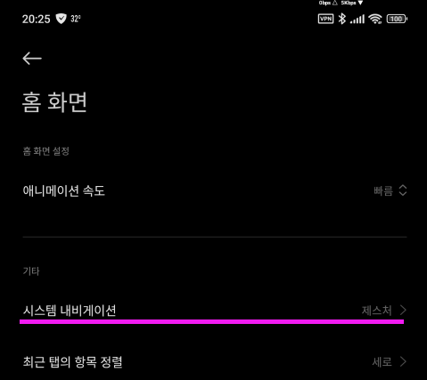 4. 폰 설정 > 홈 > 시스템 내비게이션 > 제스처 변경