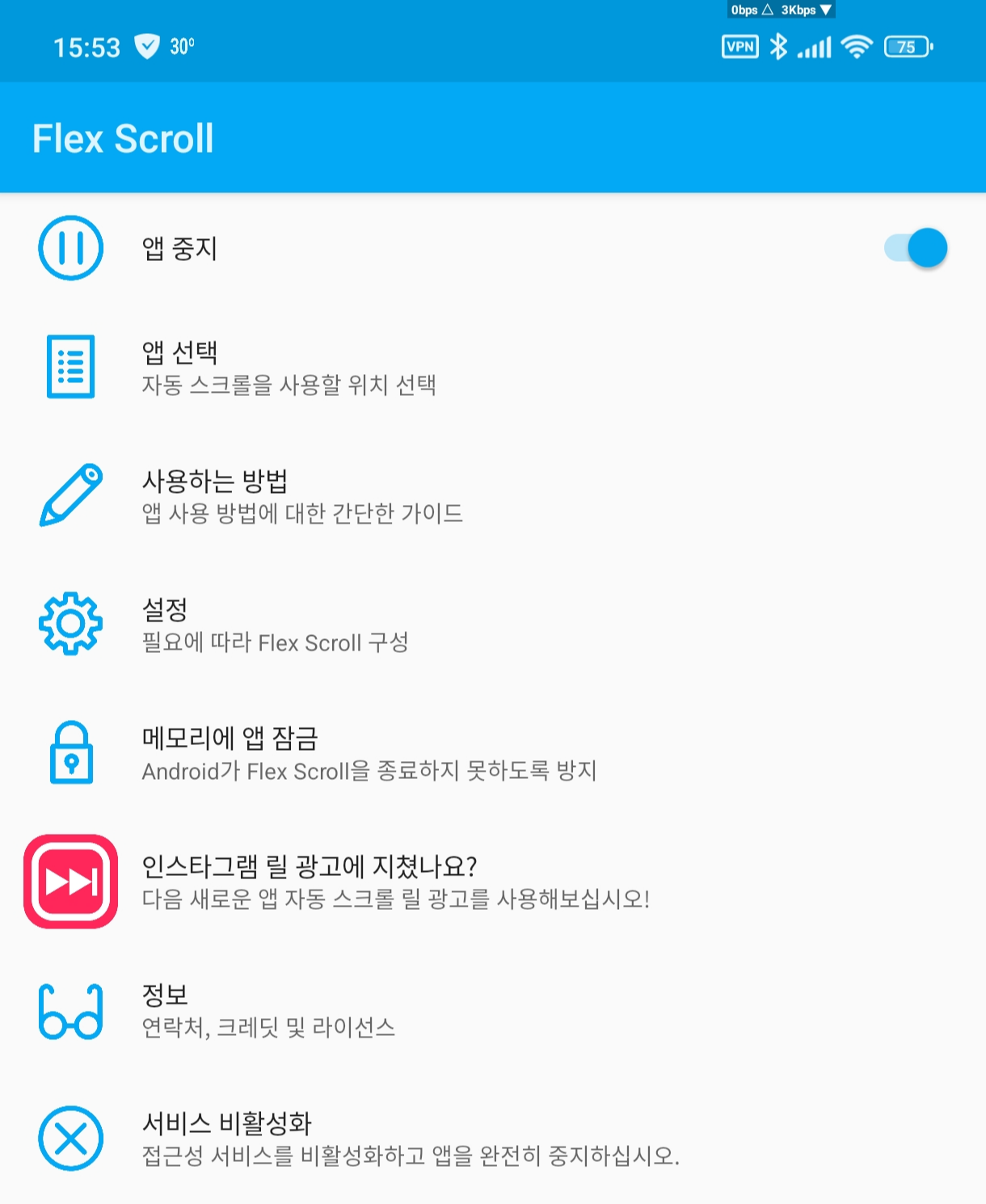스토어 링크 : https://play.google.com/store/apps/details?id=com.phonephreak.pagescroll