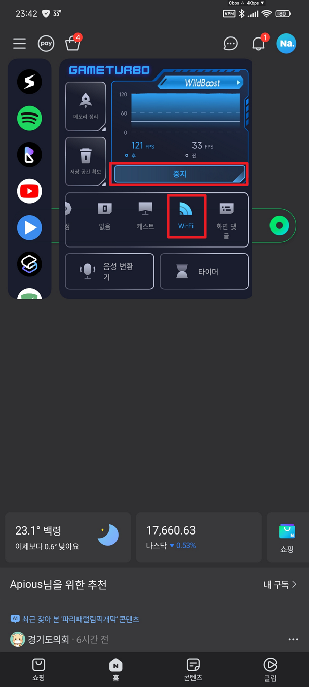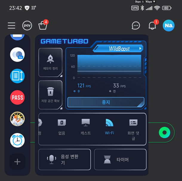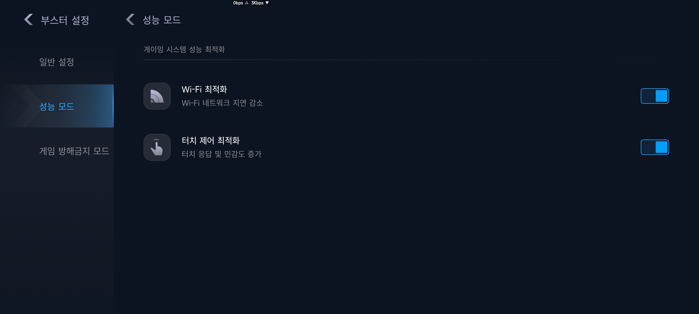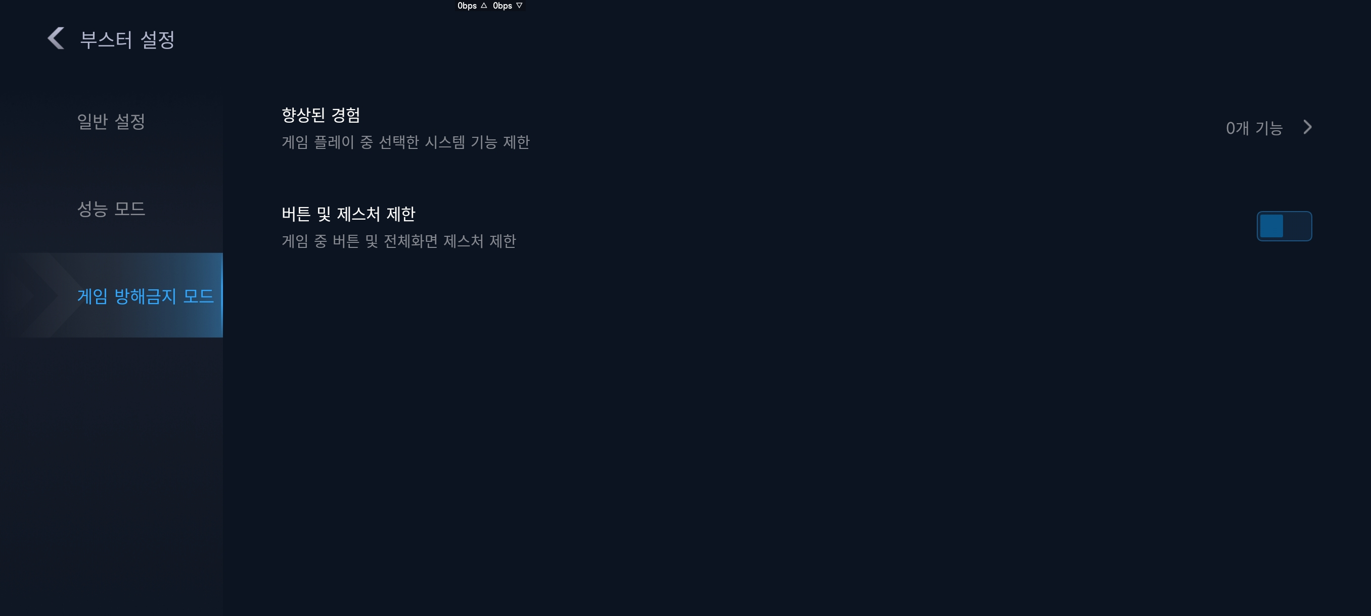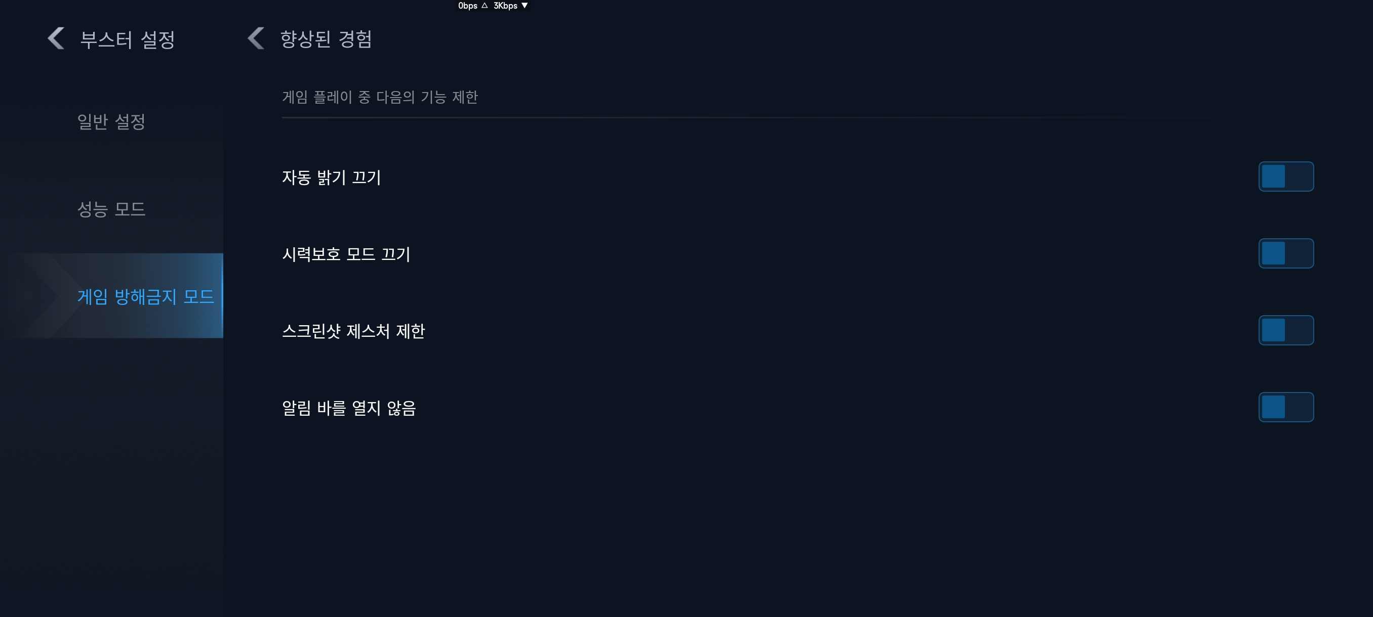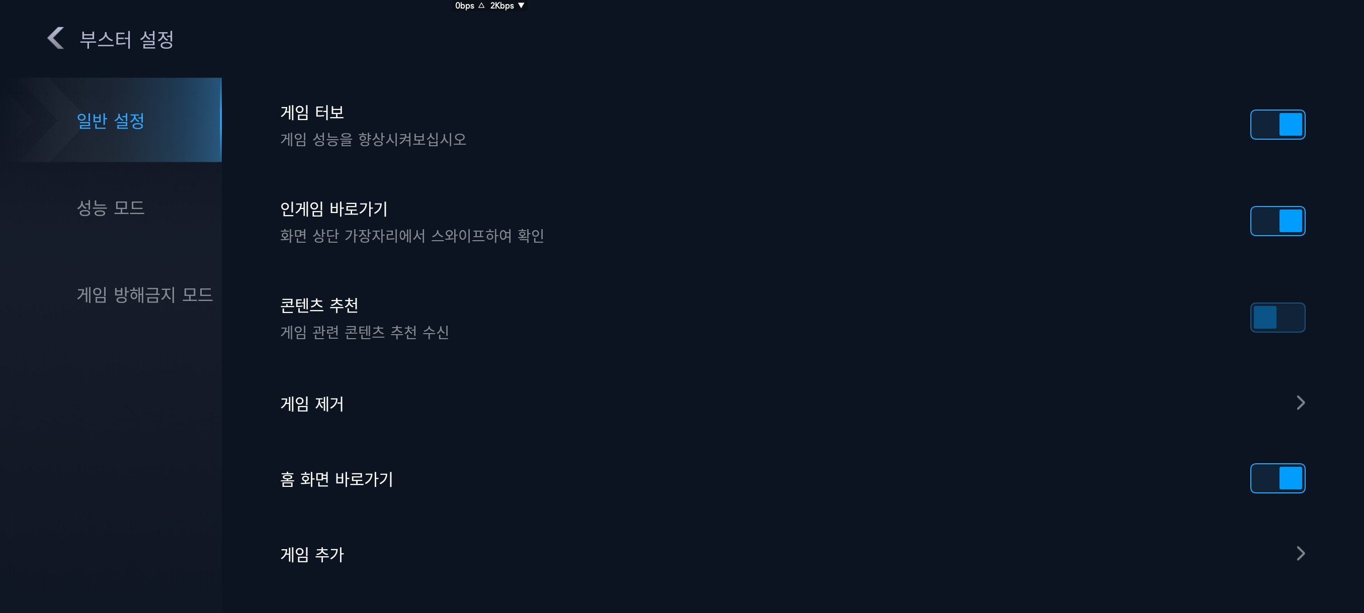 보안앱 - 게임 터보 - 게임 터보 설정(우측 기어 모양) 에서의 옵션은