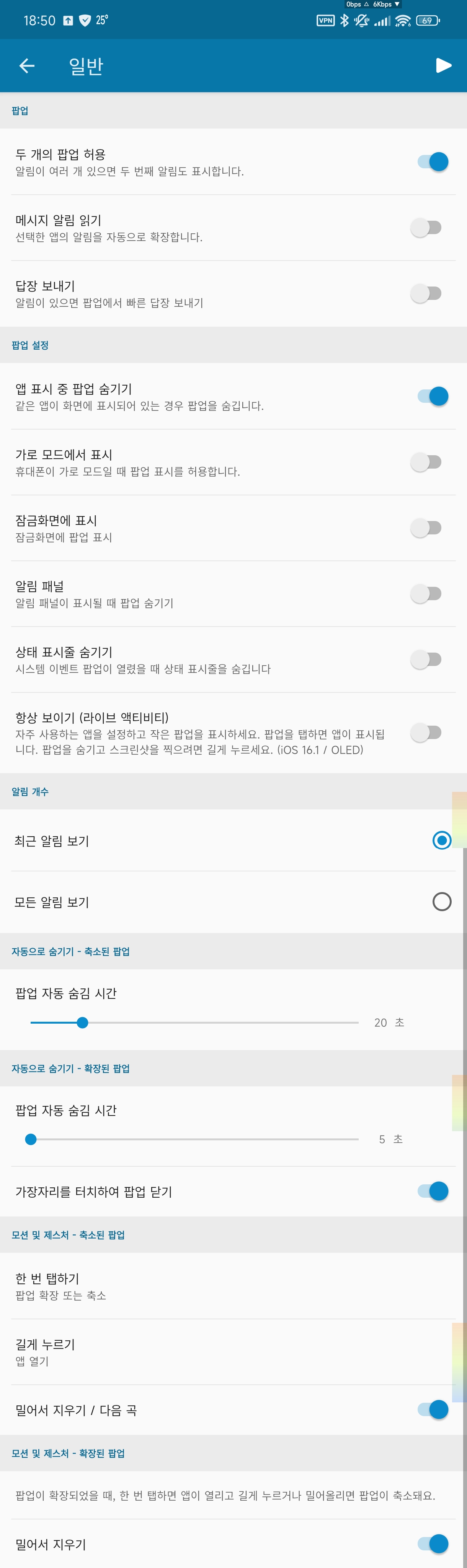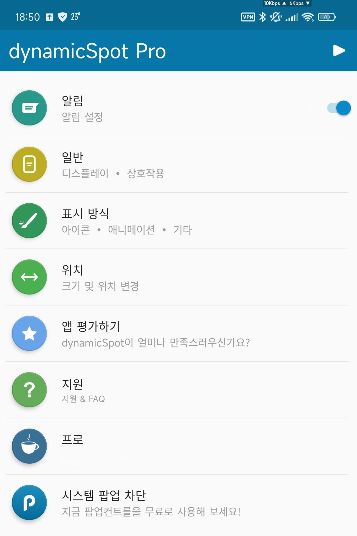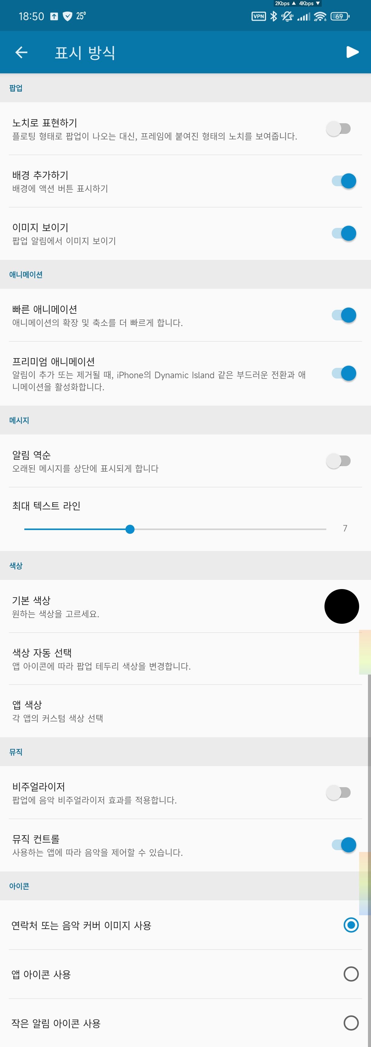 기본적 메뉴는 알림, 일반, 표시 방식, 위치 4종으로 끝 아주 간단합니다만 서브 메뉴는 단순하지 않아요
