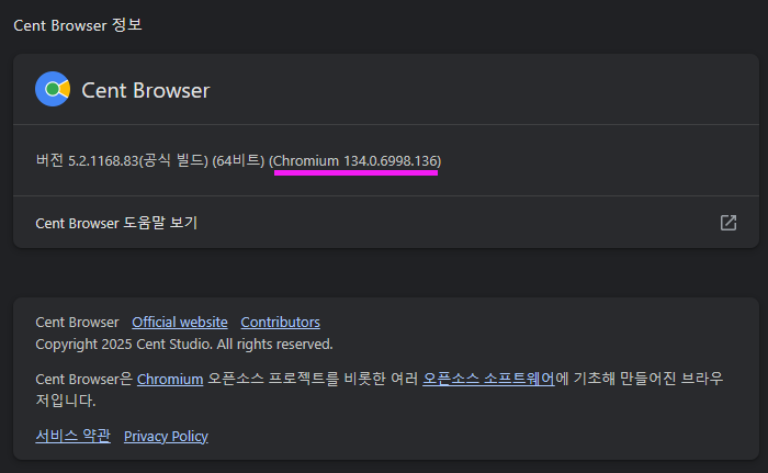 ●크로미움 개발된 센트브라우저는 최적화가 잘 되어 있어 이전, 이후의 현재 버전까지도 아는 사람만 잘 쓰고 있는 실정입니다