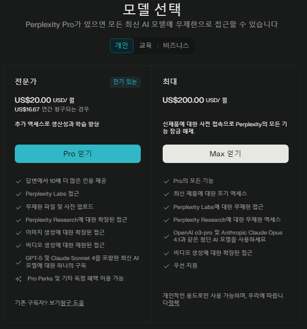 퍼플렉시티 Ai 모든 모델 - 251024